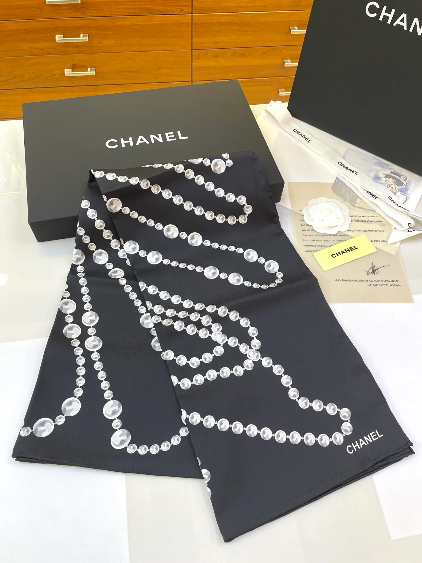Платки CHANEL — аксессуар из двустороннего шелка с декоративными жемчужинами ...