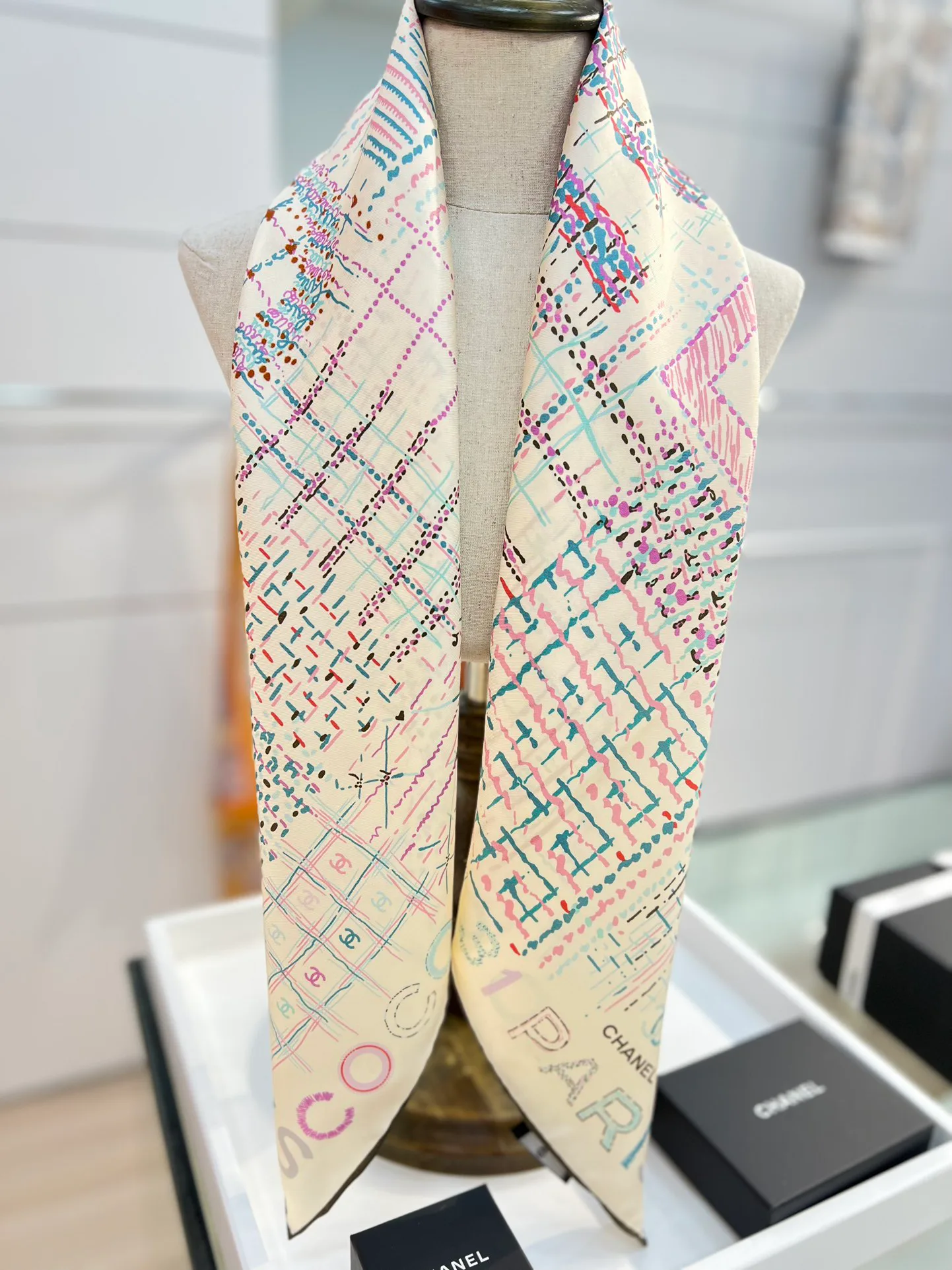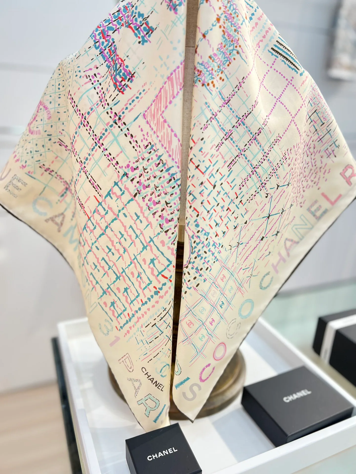 Этот стильный платок является воплощением классики, которая постоянно трансформируется. Он относится к серии "Конпэн" от бренда CHANEL, впервые представленной в 2004 году. Аксессуар отличается уникальным дизайном с знаменитым логотипом в форме большого CC, что делает его невероятно востребованным.