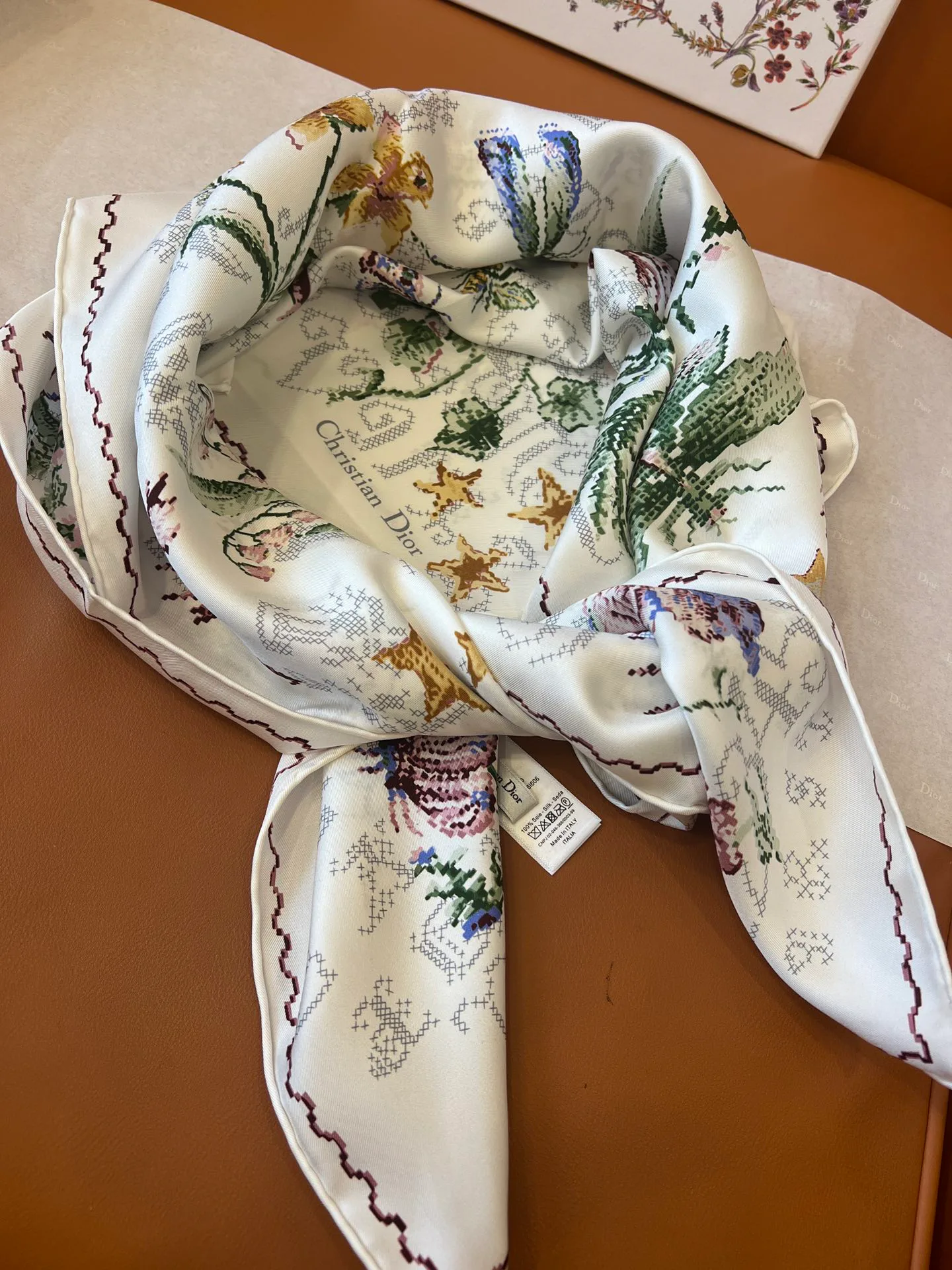 Размером 90x90 см, этот платок универсален и может быть использован как аксессуар для шеи, добавляя нотку шика к любому наряду, или как стильная головная повязка, что подчеркнёт ваш индивидуальный стиль. Каждое изделие поставляется в роскошной упаковке, что делает его отличным подарком для ценителей моды и утонченной эстетики.