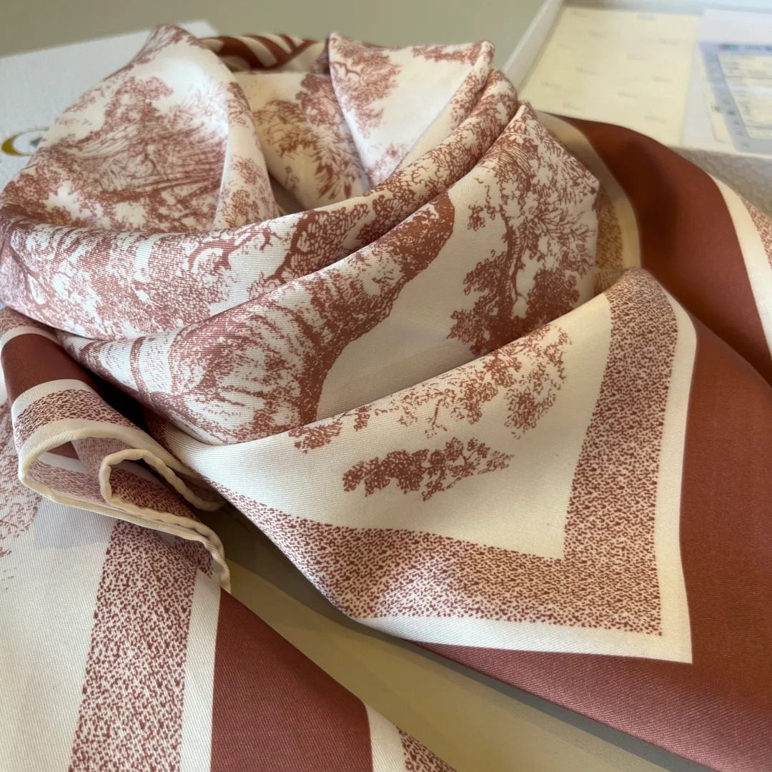 Шелковая текстура обеспечивает блеск, гладкость и мягкость, а лёгкая драпировка делает платок универсальным аксессуаром для повседневных и вечерних образов. Подходит для ношения на шее, как головной убор или ободок, а также в качестве акцента к пальто или жакету.