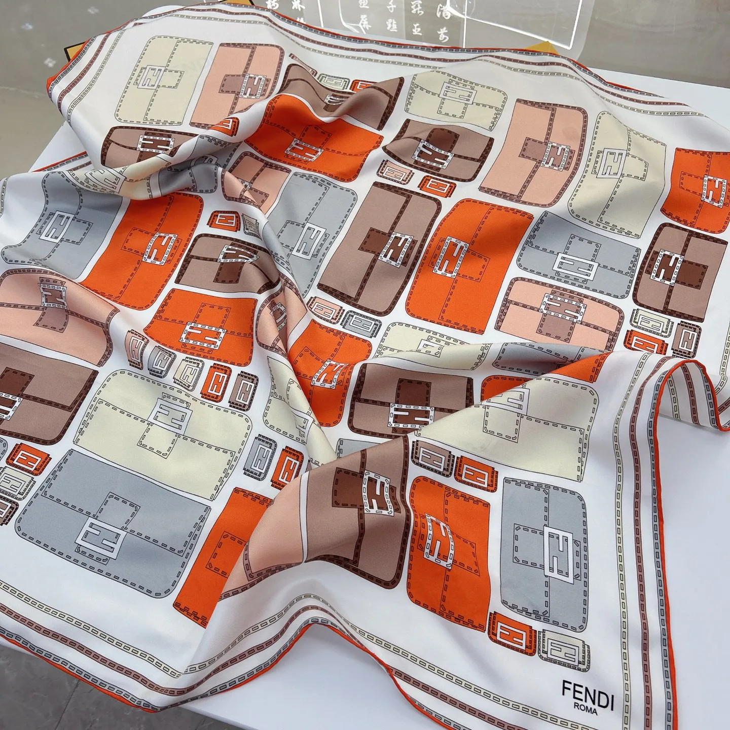Данный платок украшен ярким и запоминающимся графическим дизайном, перекликающимся с характером знаменитых сумок Fendi Baguette. Выберите из нескольких стильных цветовых решений: насыщенный оранжевый, нежный светло-зелёный и утончённый голубовато-серый.