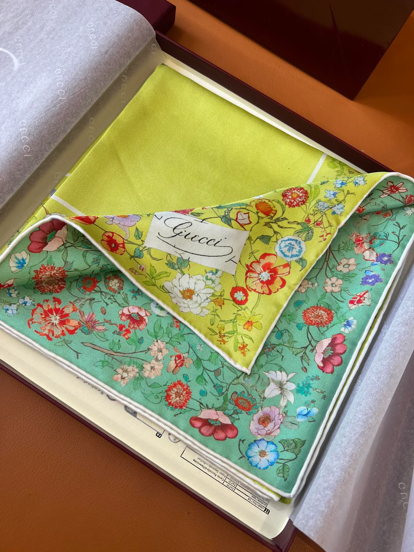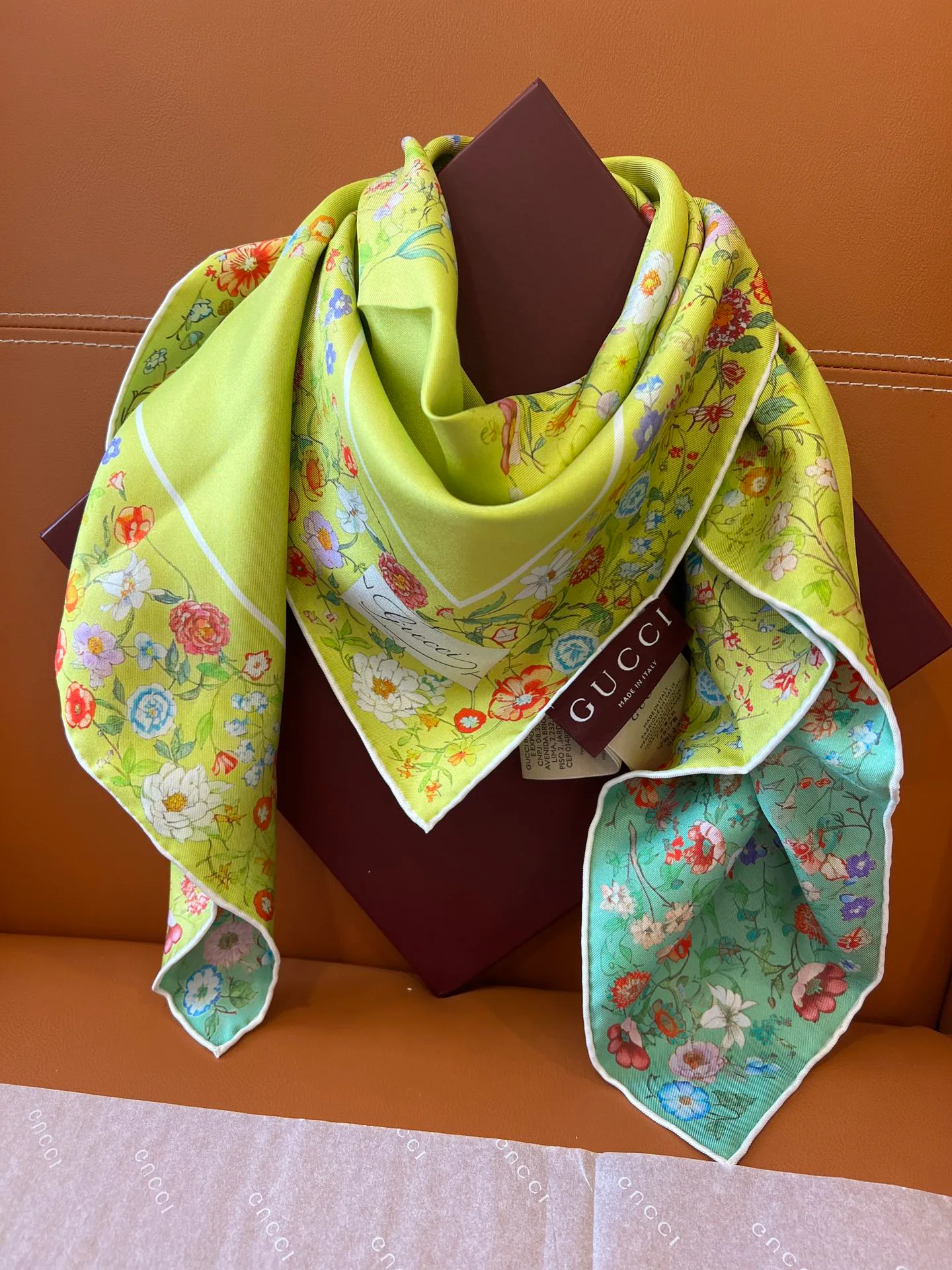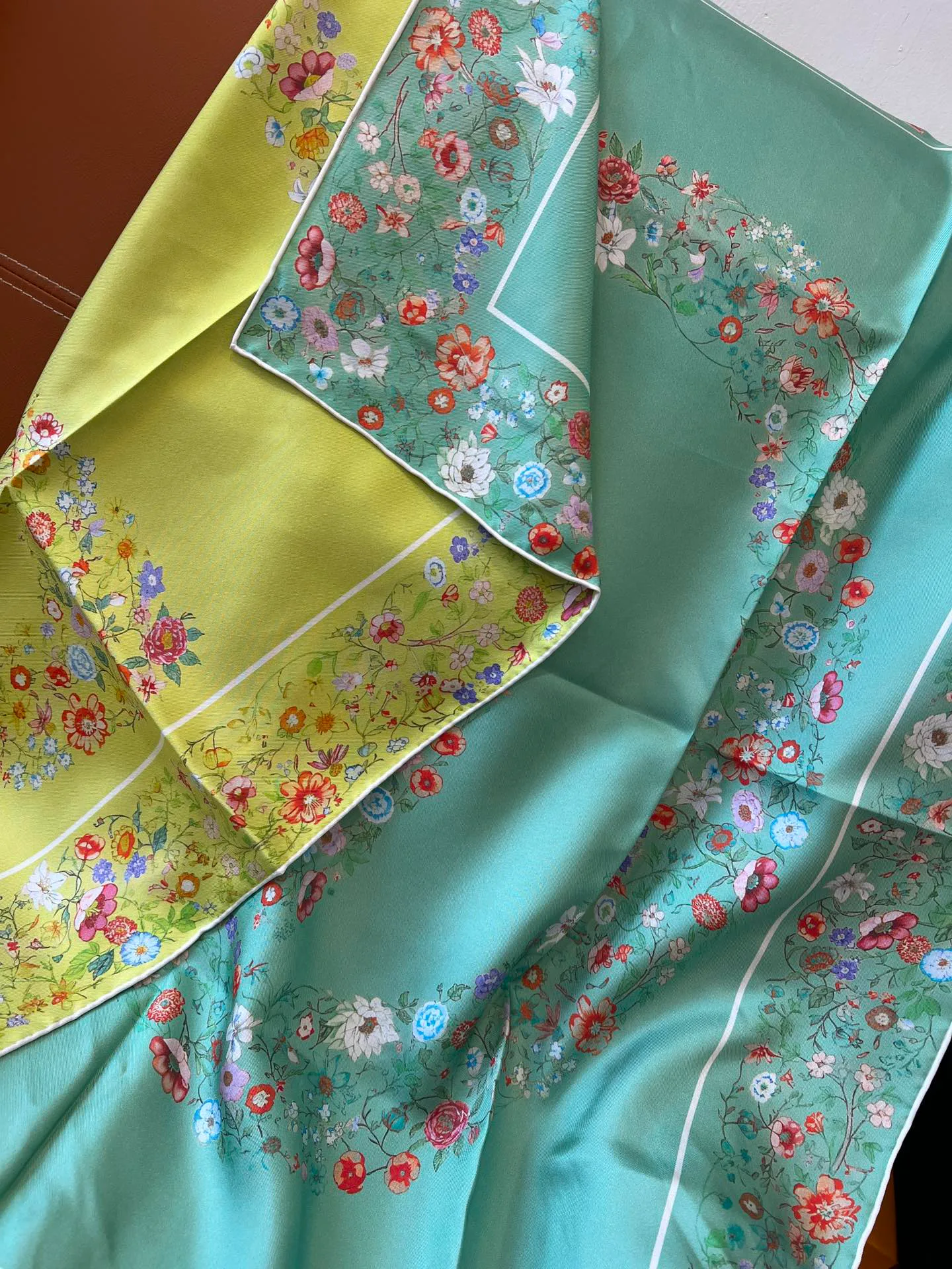 Двусторонний дизайн и универсальный размер делают его подходящим для носки вокруг шеи, как головной убор или аксессуар к сумке. Уход требует бережной стирки в холодной воде вручную или профессиональной химчистки с избеганием сильного отжима. Хранить платок следует аккуратно, вдали от прямых солнечных лучей.