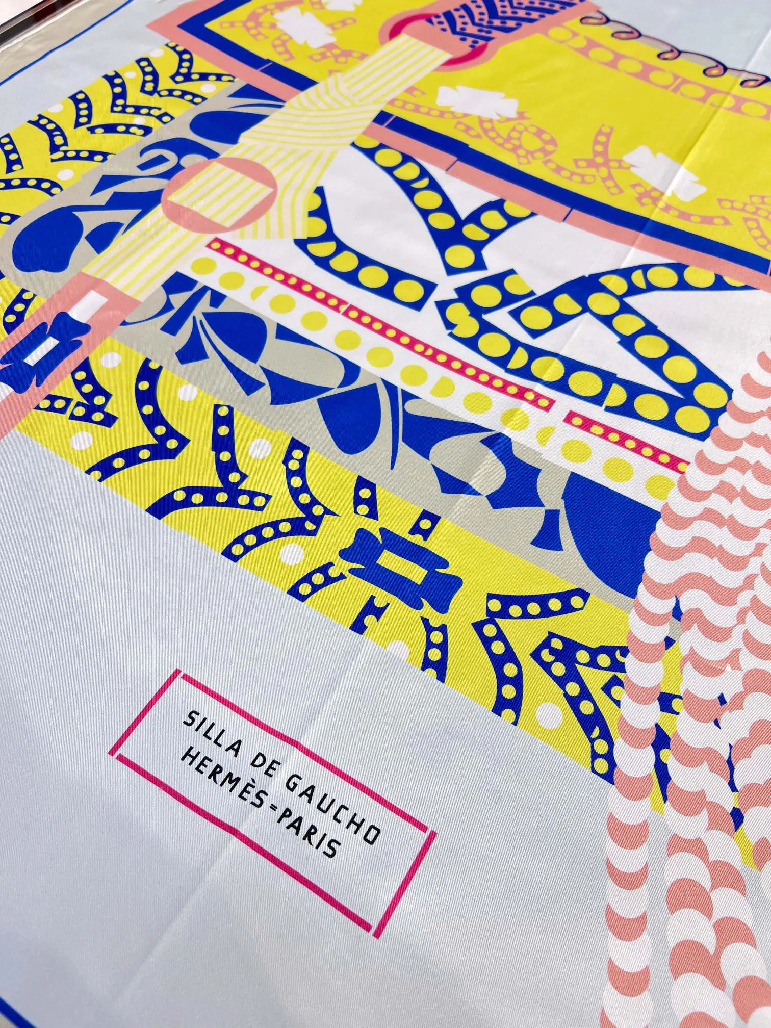 Платок отличается вручную обработанными краями, что придаёт ему особый шик и уникальность. Он имеет размеры 88.5 x 88.5 см, однако из-за ручной работы размеры могут немного варьироваться.