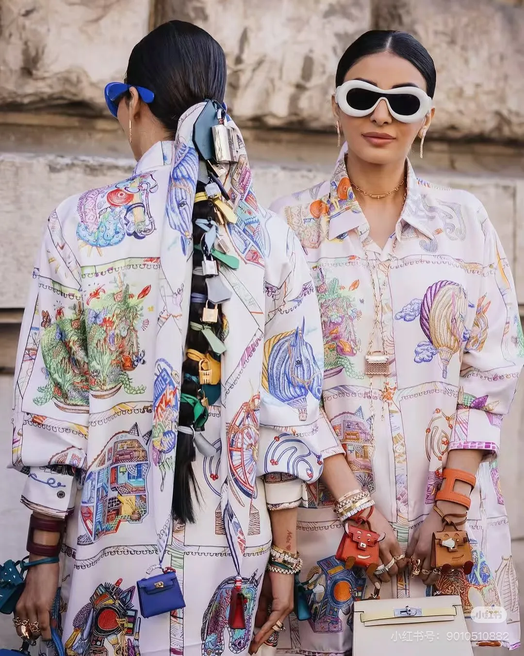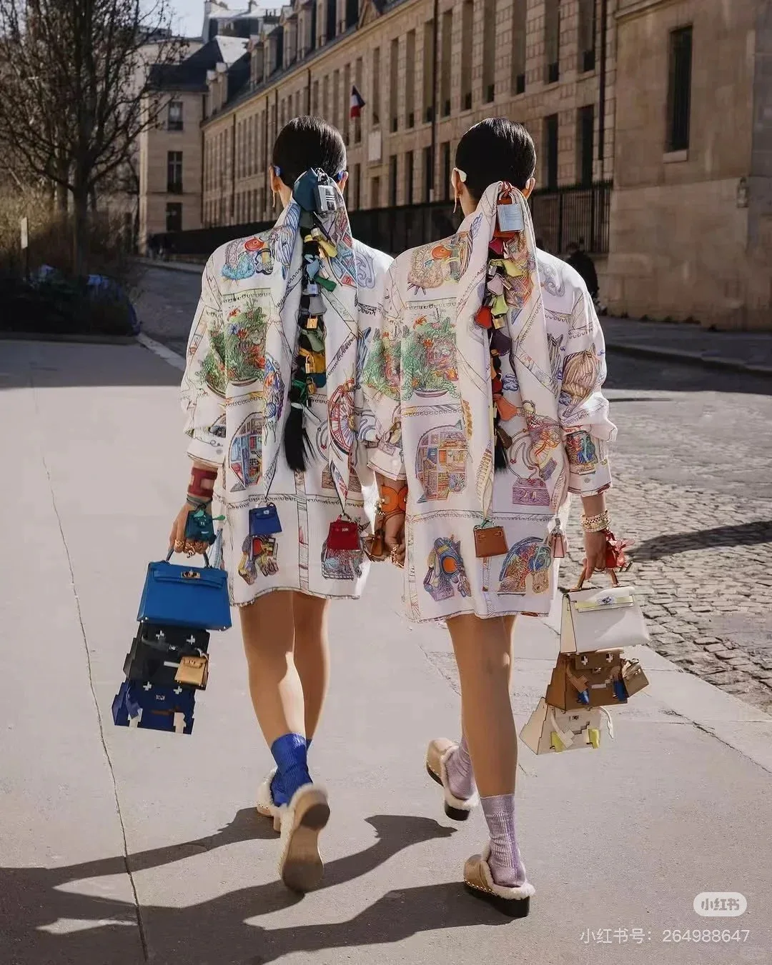 Особенностью этого платка являются декоративные элементы, добавленные к его дизайну, такие как миниатюрные сумочки или другие интересные детали, которые делают изделие еще более оригинальным и привлекающим внимание.