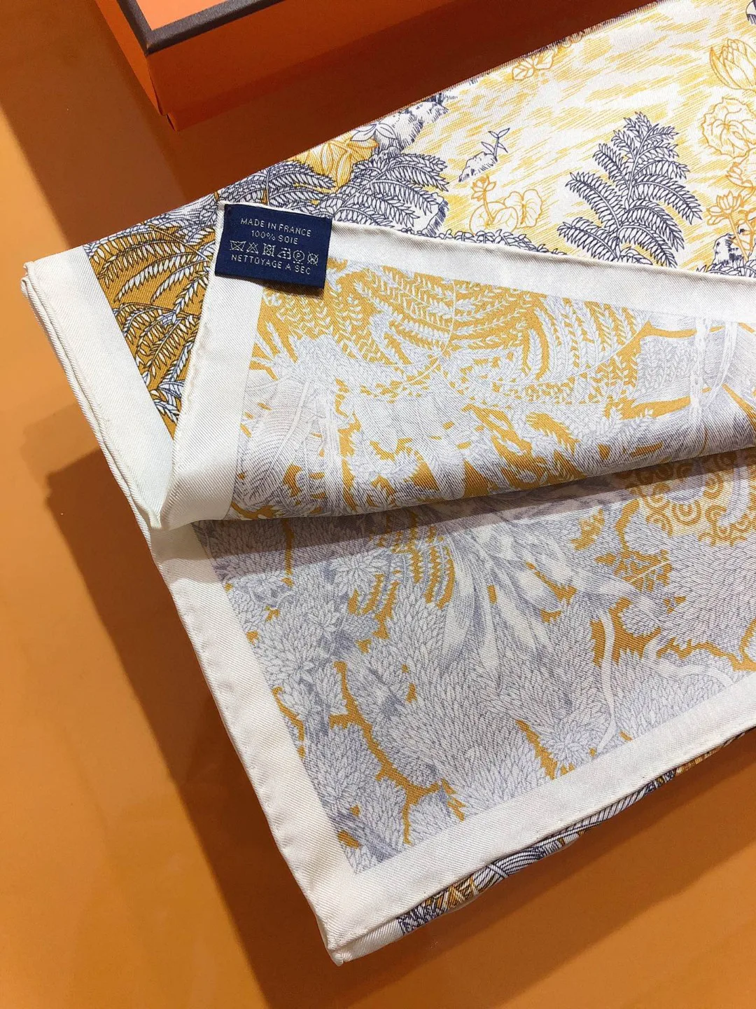 История бренда HERMES начинается в 1880 году, когда был открыт первый магазин на улице Фобур Сент-Оноре в Париже, что стало началом невероятного пути. Дизайнеры этого платка, Octave Marsal и Théo de Gueltzl, талантливо перенесли атмосферу знаменитого магазина в живописный тропический лес, создав оригинальный и яркий дизайн.