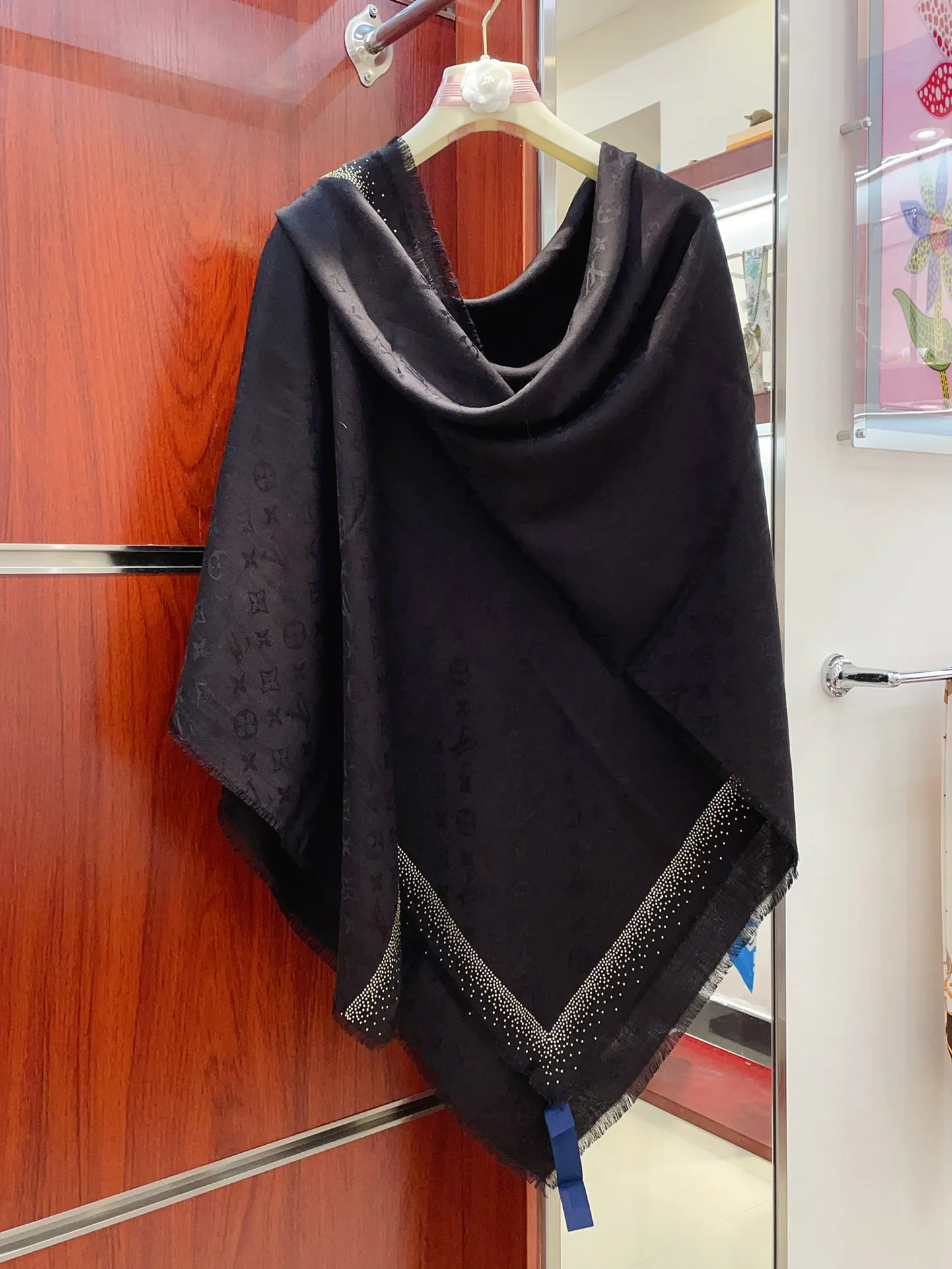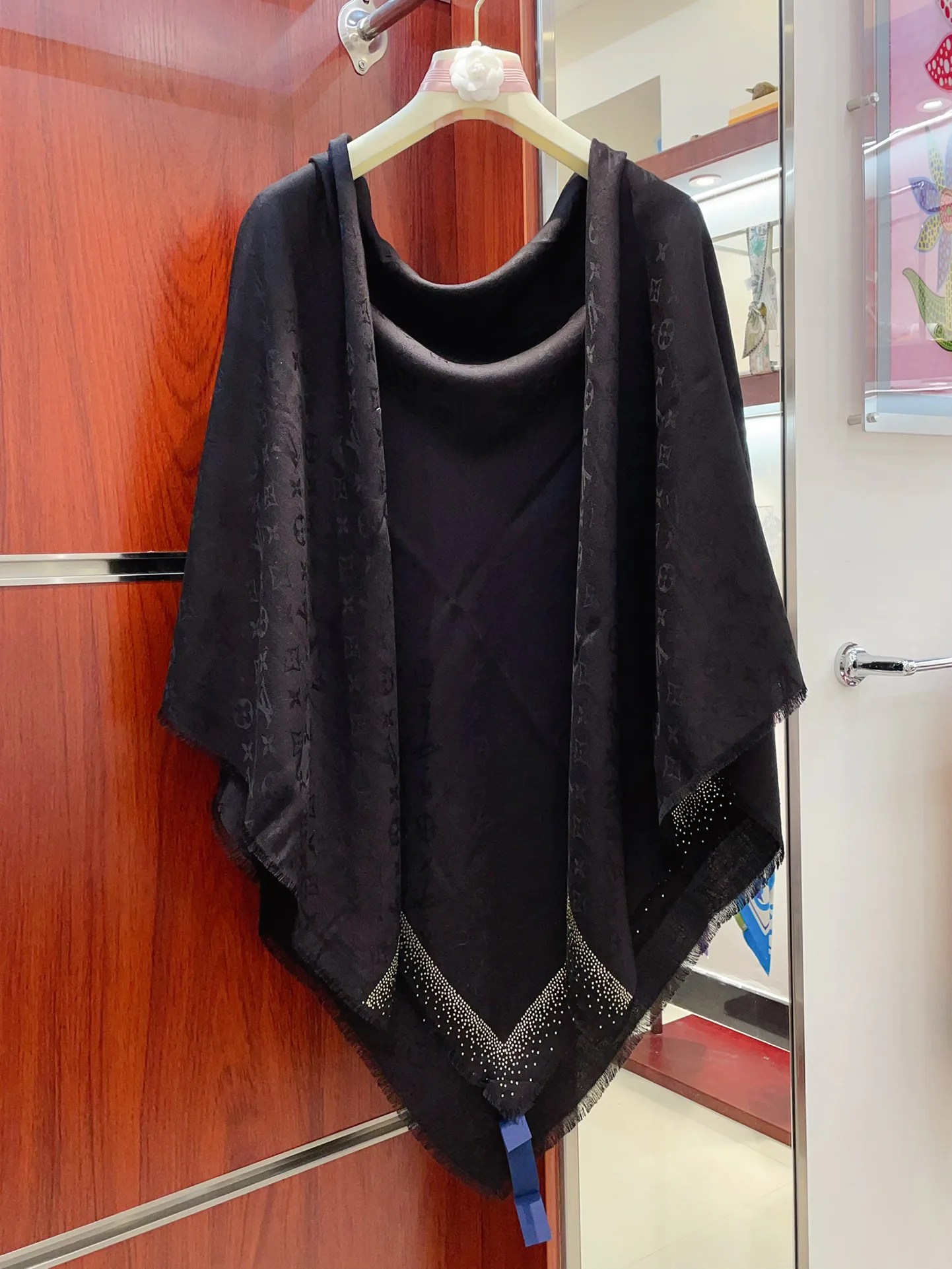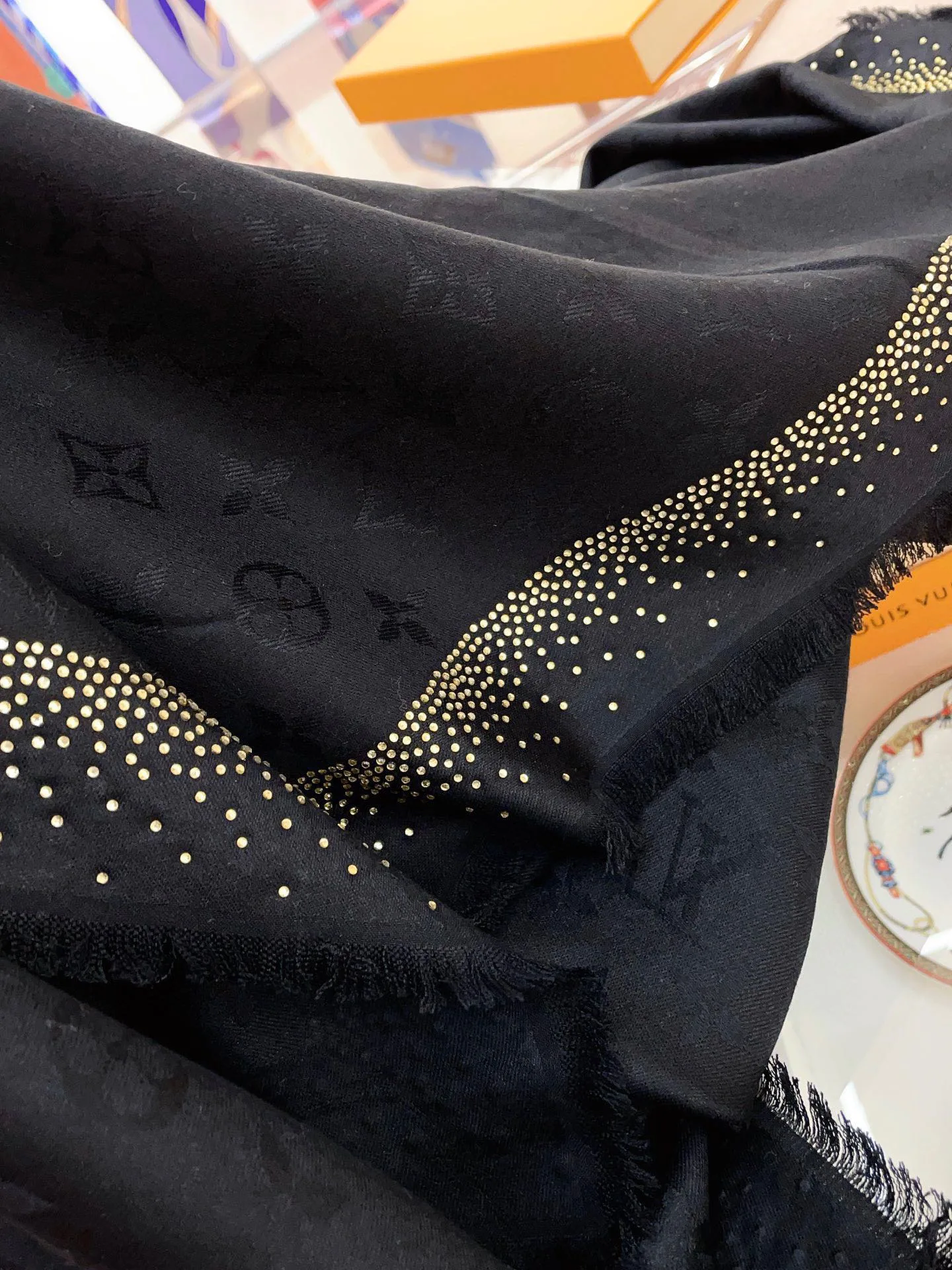 Шарф подходит для холодного времени года и особых мероприятий, добавляя образу изысканности. Его можно сочетать с классическими пальто и элегантными аксессуарами. Размер 140×140 см обеспечивает оптимальную пропорцию для повседневной носки и стильных образов.