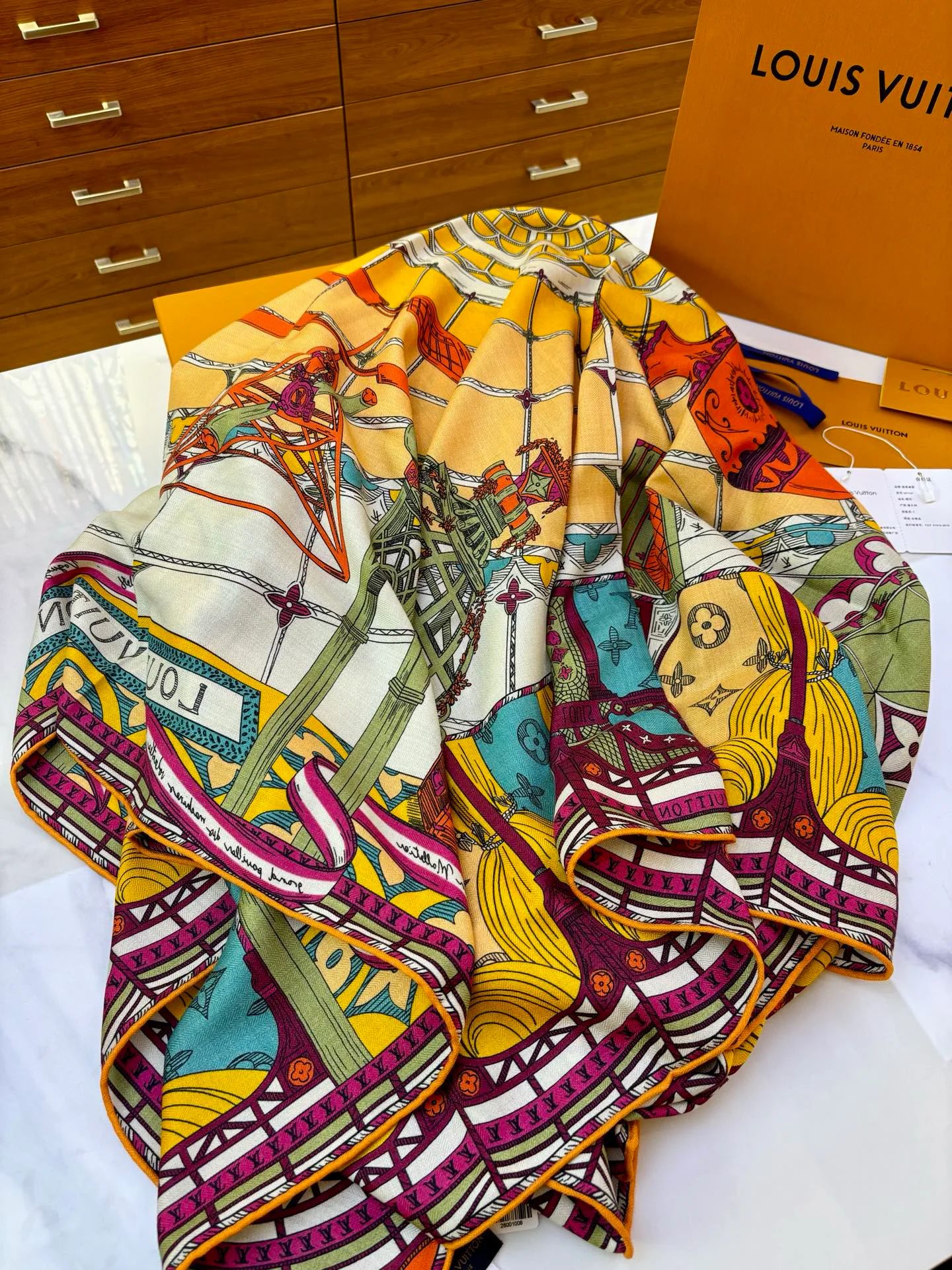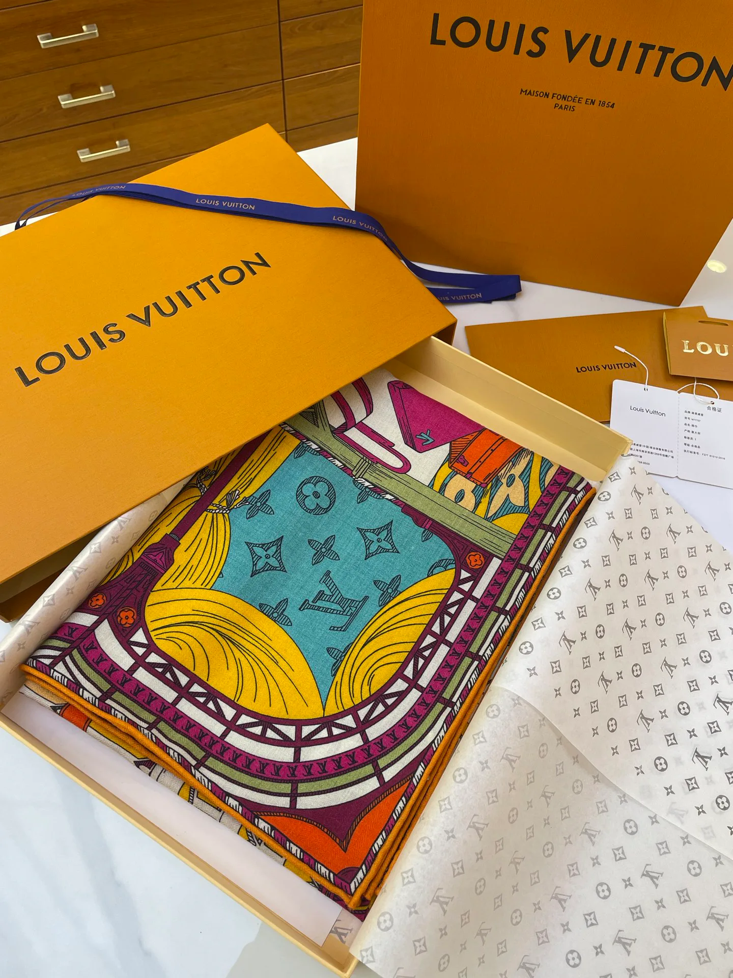 Шарф подходит для повседневной носки и в качестве стильного аксессуара в путешествиях, добавляя нотки французской элегантности. На изделии размещен логотип Louis Vuitton. Уход требует деликатной стирки для сохранения материала.
