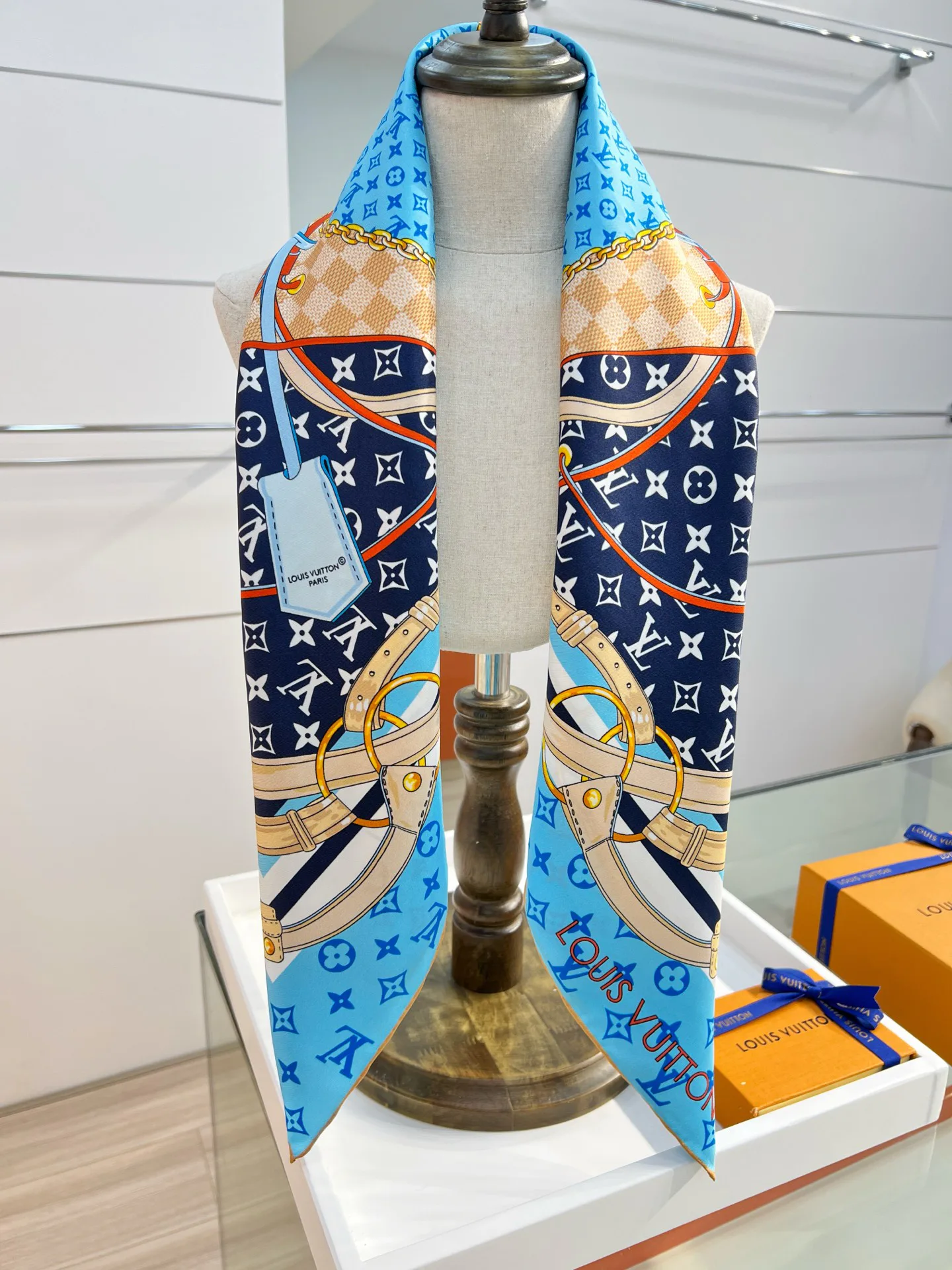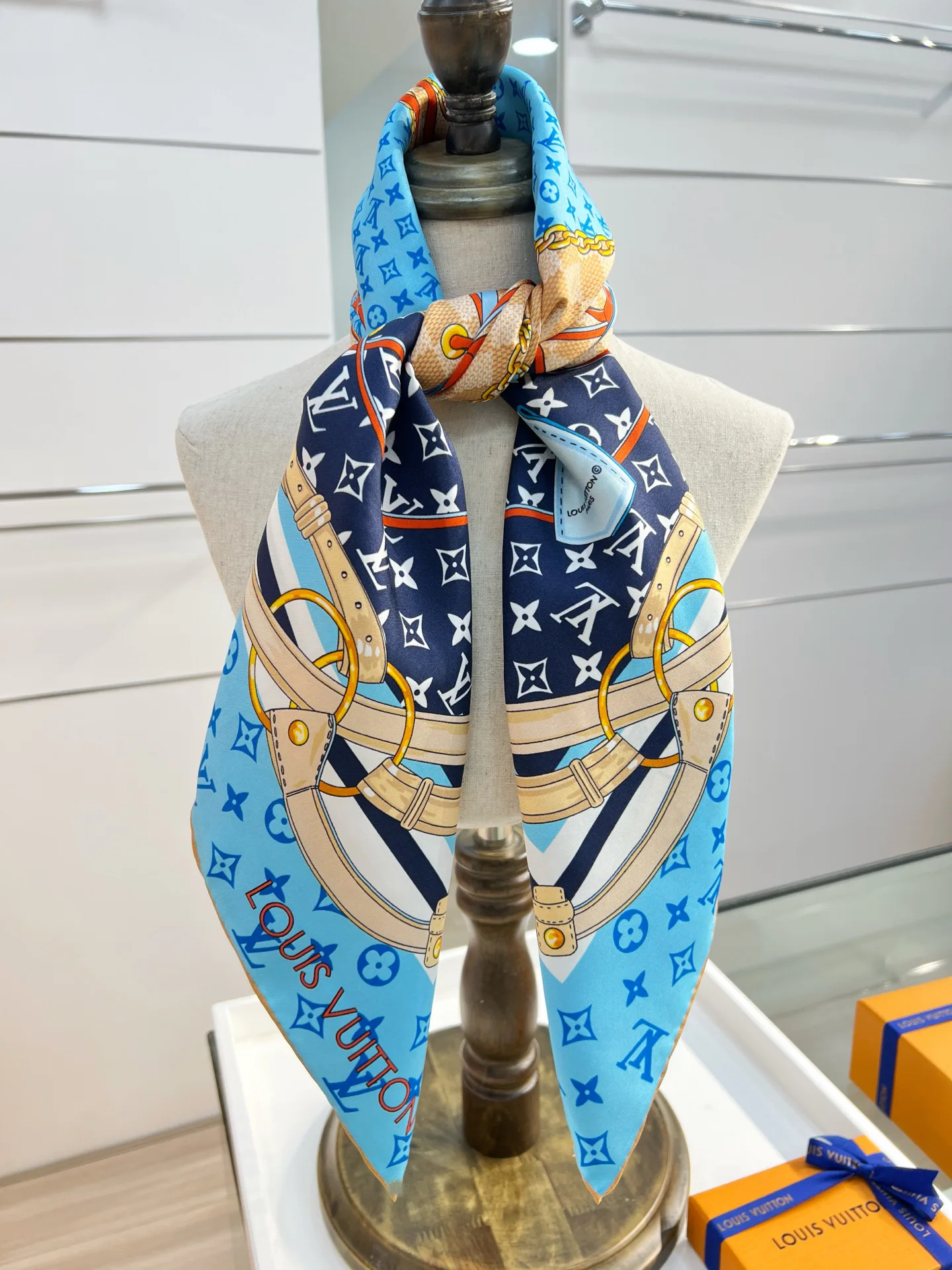 Платок выполнен методом шелкографической печати, что обеспечивает четкость рисунков и долговечность. Края вручную обработаны, что добавляет шарм и профессионализм. Логотип Louis Vuitton и узоры Monogram и Damier придают платку дополнительную ценность.