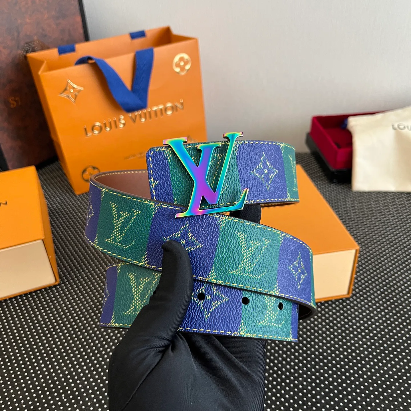 Ремень DEFAULT LOUIS VUITTON — шириной 4 см, поверхность украшена ...