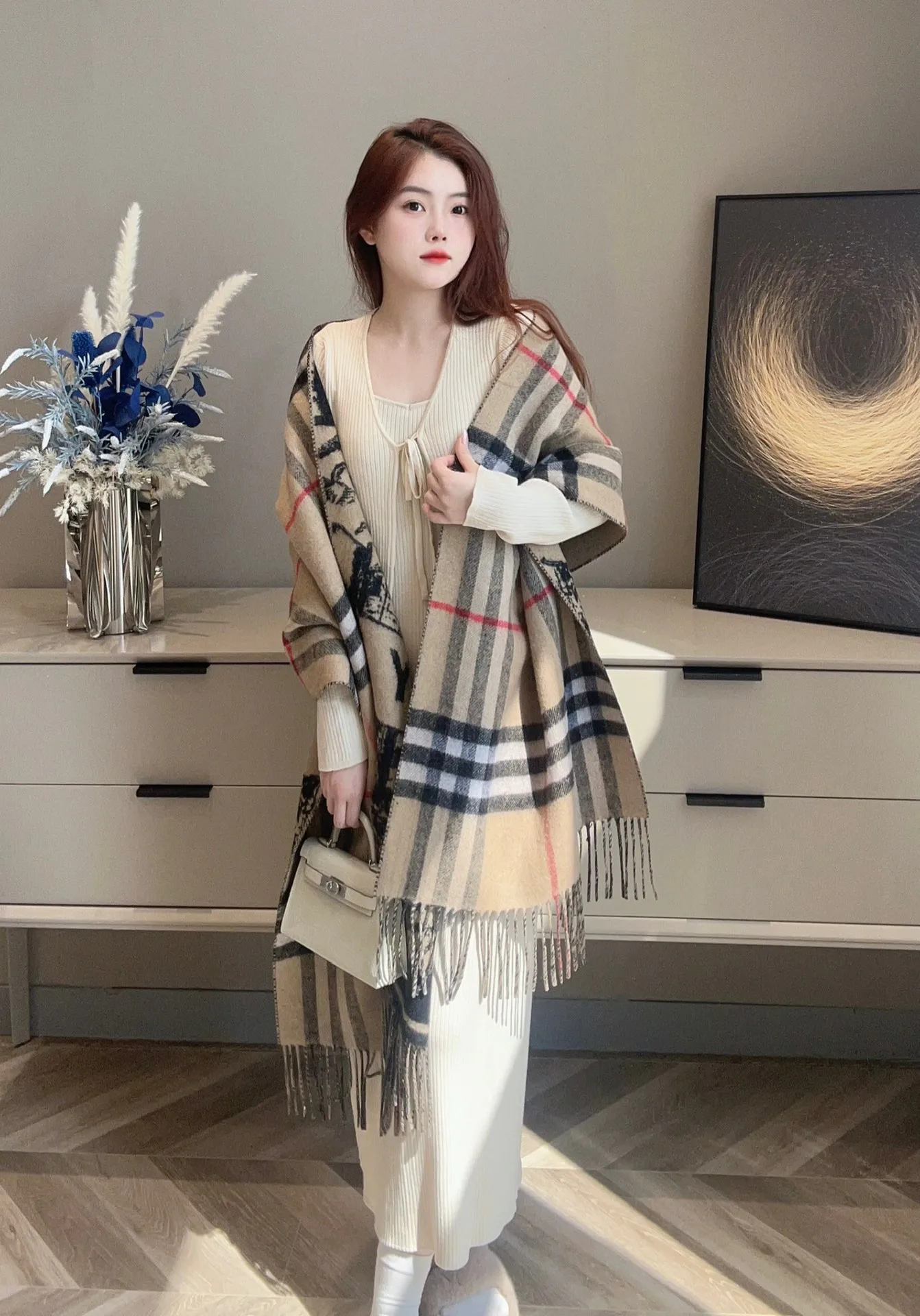 Декоративные кисти по краям придают изделию особый шарм, а клетчатый принт добавляет нотку игривости и современности в общий образ. Такой шарф легко сочетать с различными стилями одежды: он отлично смотрится как с повседневной, так и с более нарядной, что делает его идеальным вариантом для повседневной носки и особых мероприятий.