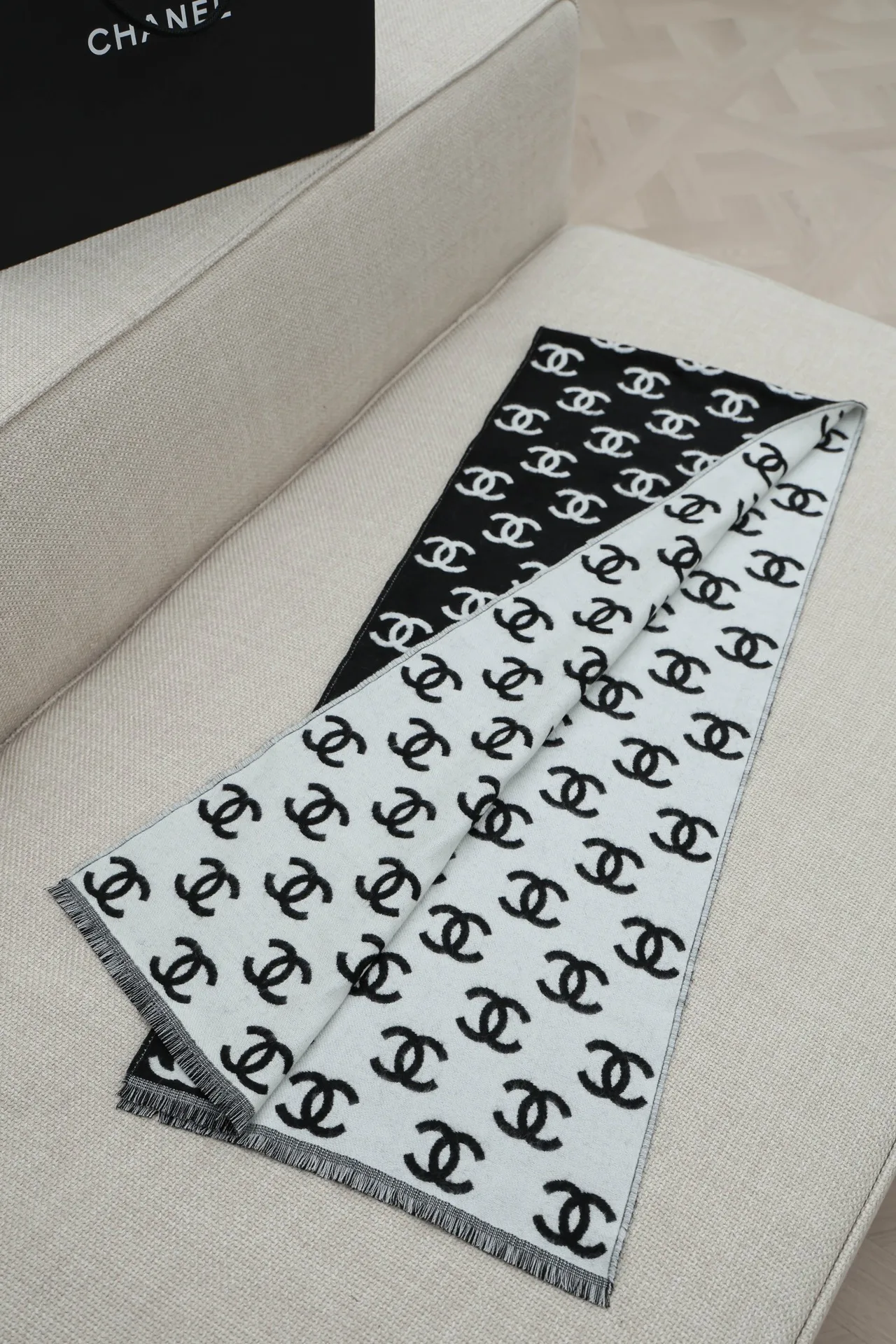 Размер шарфа составляет 180 × 35 см. Край изделия обрабатывается вручную, что обеспечивает аккуратную отделку. Лицевая и изнаночная стороны симметричны, что подчеркивает его стильный дизайн. Рекомендуется профессиональная сухая чистка для ухода.