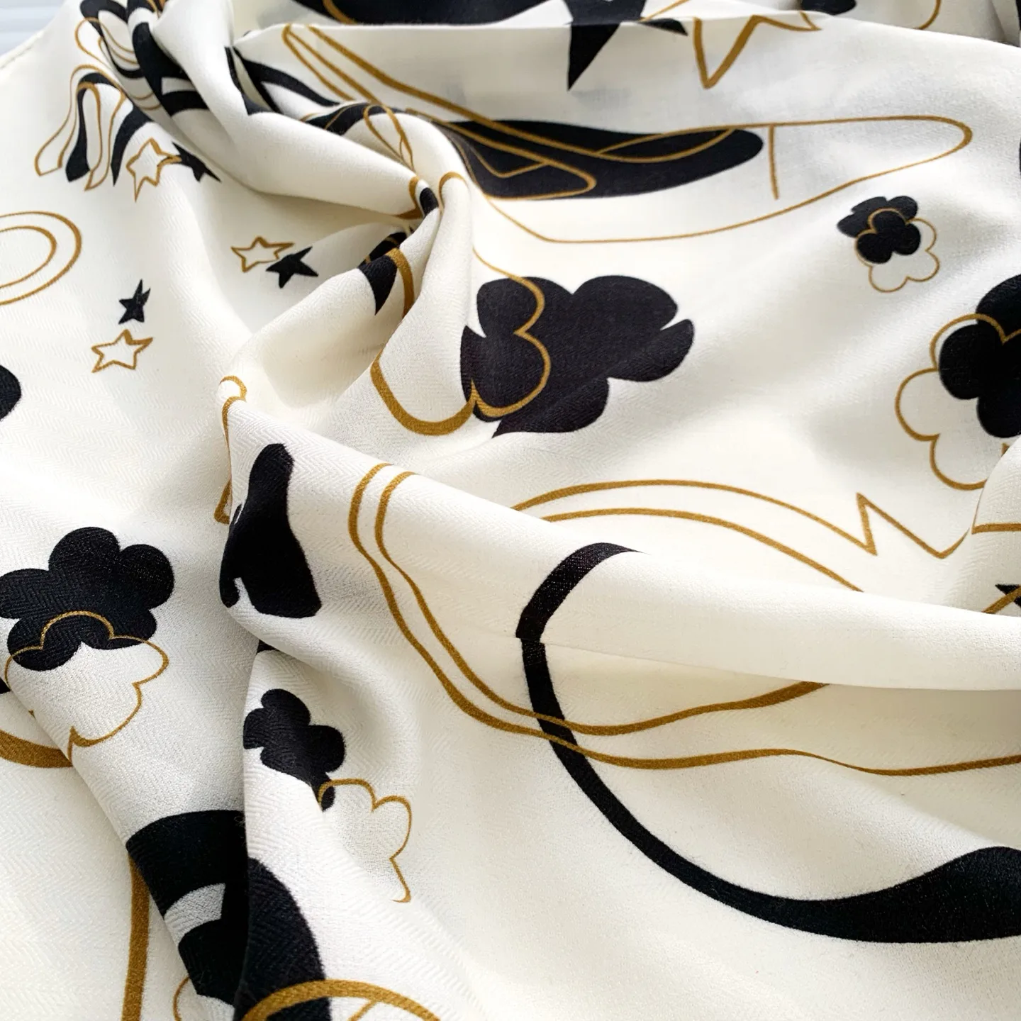 Классическая форма позволяет носить платок вокруг шеи, на плечах или как стильный элемент на сумке. Уход за изделием требует бережной обработки: рекомендуется ручная стирка холодной водой или профессиональная чистка.