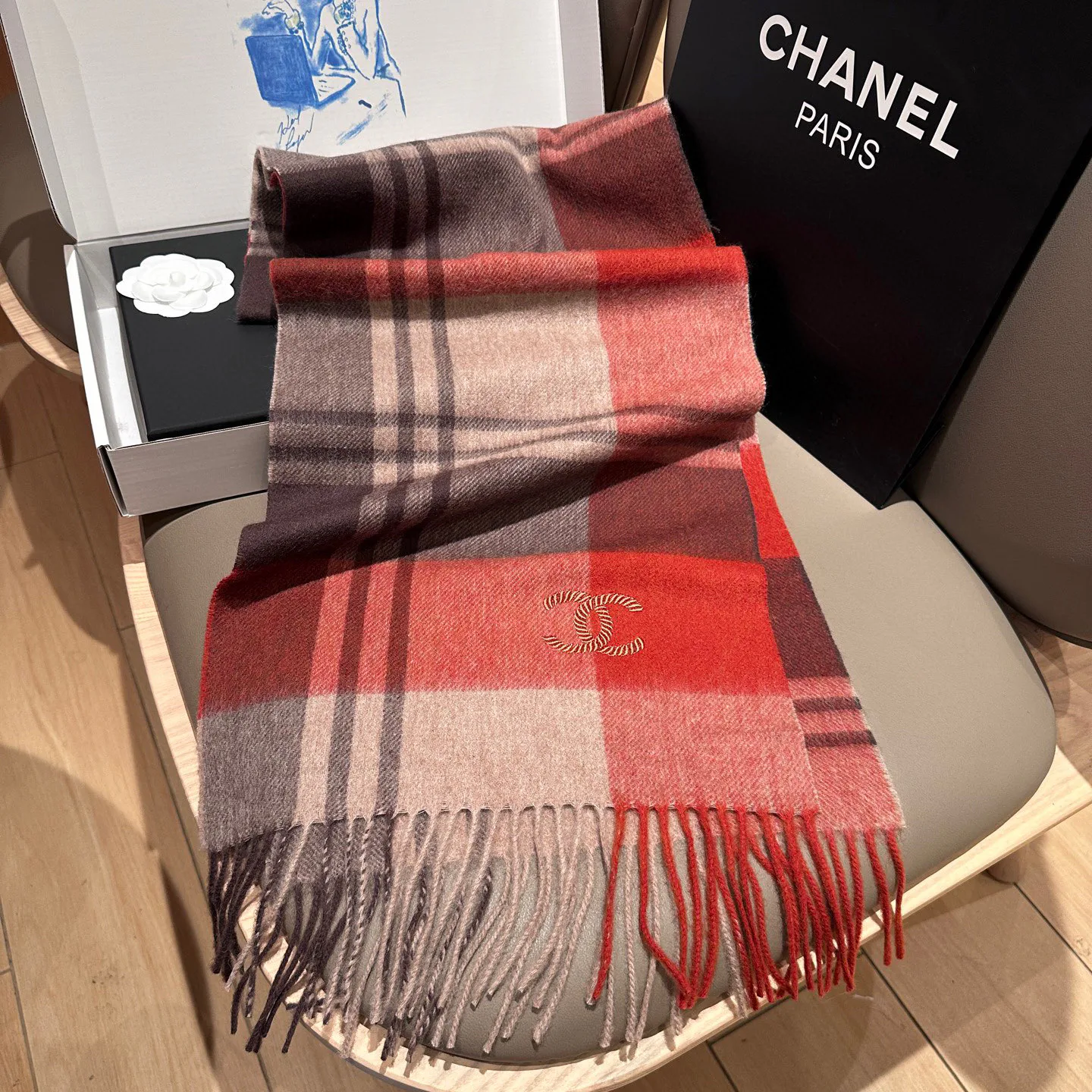 Размеры 35 x 180 см позволяют удобно обернуть шарф вокруг шеи одним или двумя слоями, обеспечивая защиту от холода и безупречную драпировку. Минималистичный декор добавляет выразительности, а также гармонирует с нейтральными тонами верхней одежды, пальто и пуховиков. Шарф CHANEL станет стильным акцентом в вашем гардеробе и подчеркнет хороший вкус владельца.
