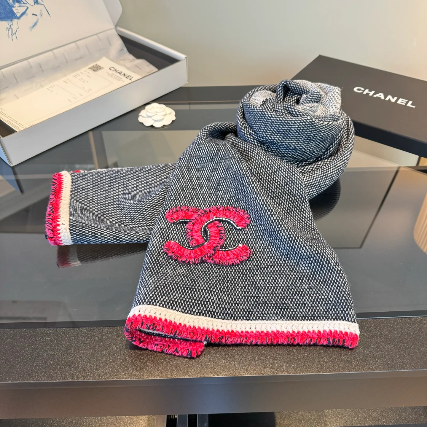 Шарф CHANEL — кашемировый шарф размером 35×220 см. Материал — кашемир ...