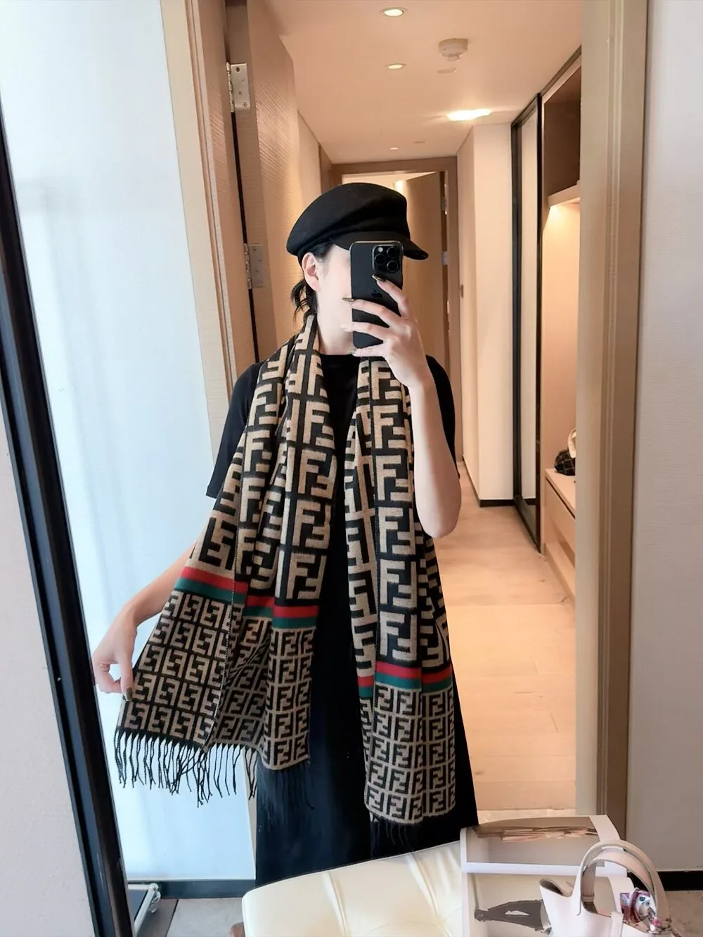 Шарф FENDI — двусторонний шарф серого цвета с контрастным жаккардовым узором Karligraphy.