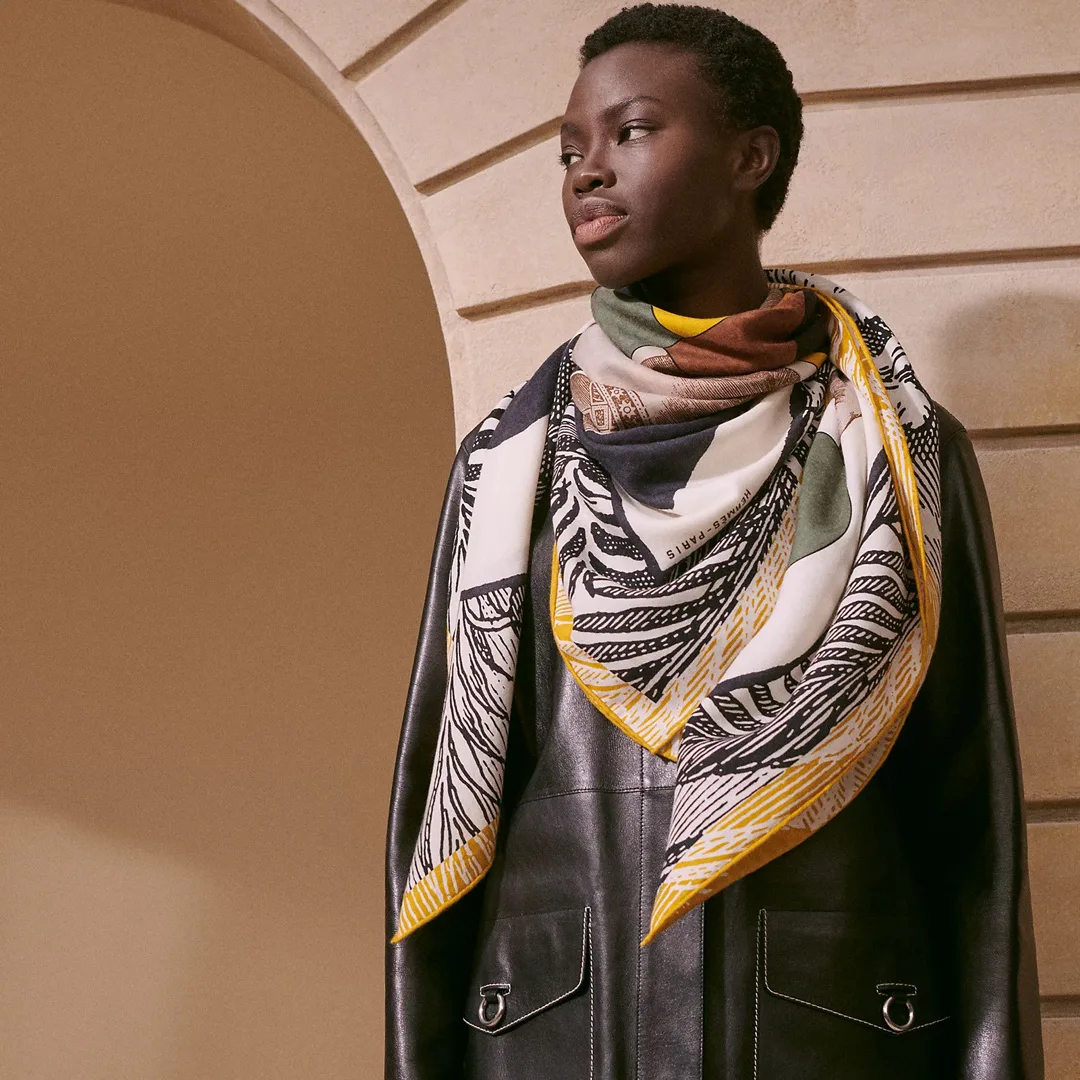 Тематика дизайна отражает эстетику HERMES с акцентом на элегантность и изысканность. Шарф легко сочетается с офисным костюмом или вечерним нарядом. Рекомендованный уход включает профессиональную сухую чистку с осторожной ручной стиркой в холодной воде, избегая механических воздействий. Хранить изделие следует в сухом месте вдали от прямых солнечных лучей.
