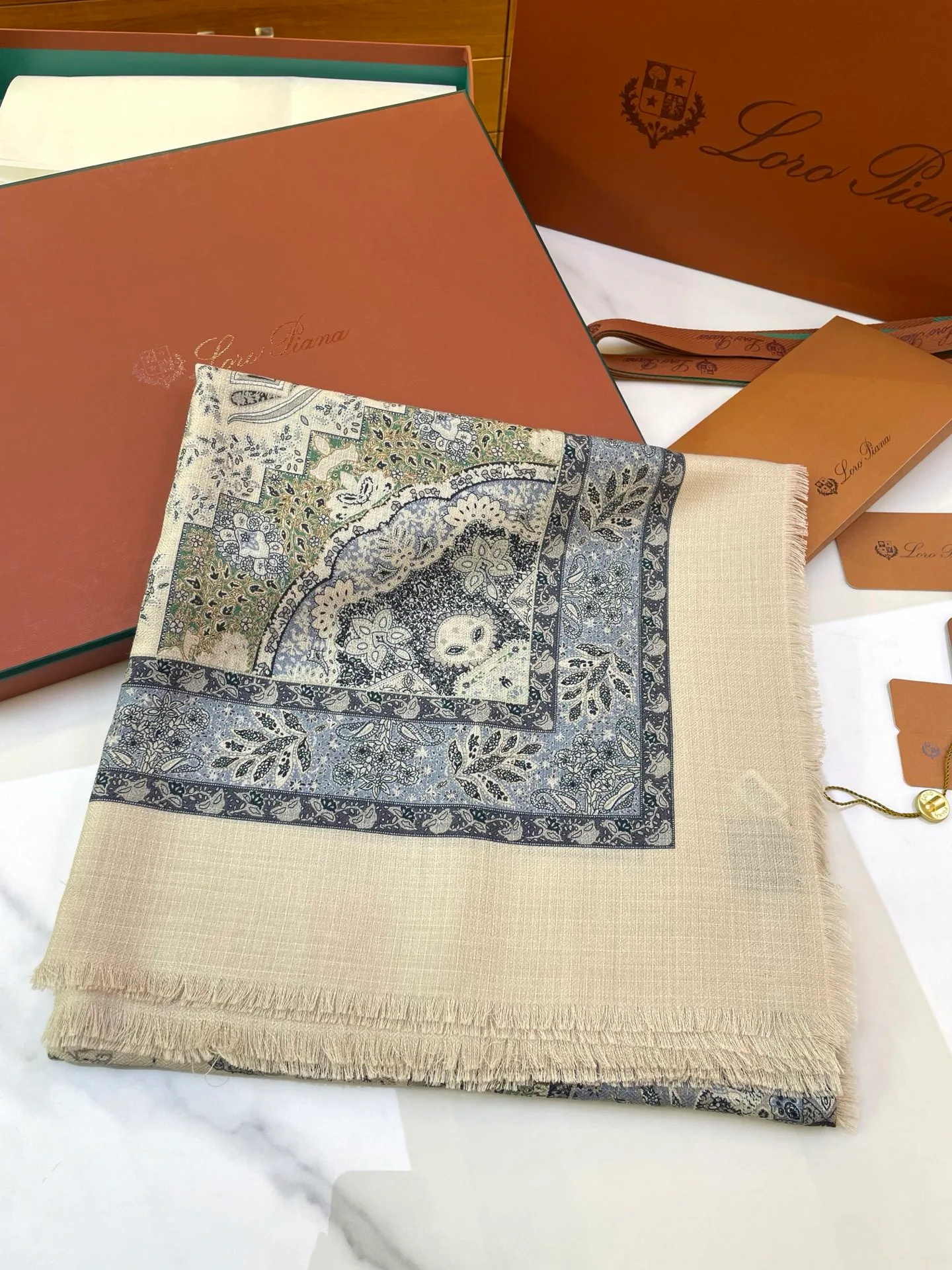 Элегантный декоративный принт, взятый из архивов бренда, придаёт изделию благородный вид. Однотонная рамка подчеркивает чистоту линий, вдохновлённая восточной эстетикой. Аккуратная бахрома длиной 1,5 см по краям добавляет текстуру. Шаль функции как стильный аксессуар для повседневного и вечернего образа.