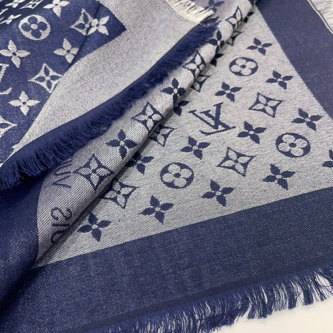 Состав: 47% шелк Mulberry, 26% вискоза, 17% шерсть, 10% полиэстер. Дизайн позволяет носить шаль как дневную, так и вечернюю вещь, обеспечивая мягкость, тепло и благородный блеск. Рекомендуется следовать стандартным инструкциям по уходу за изделиями LOUIS VUITTON из сходных материалов.