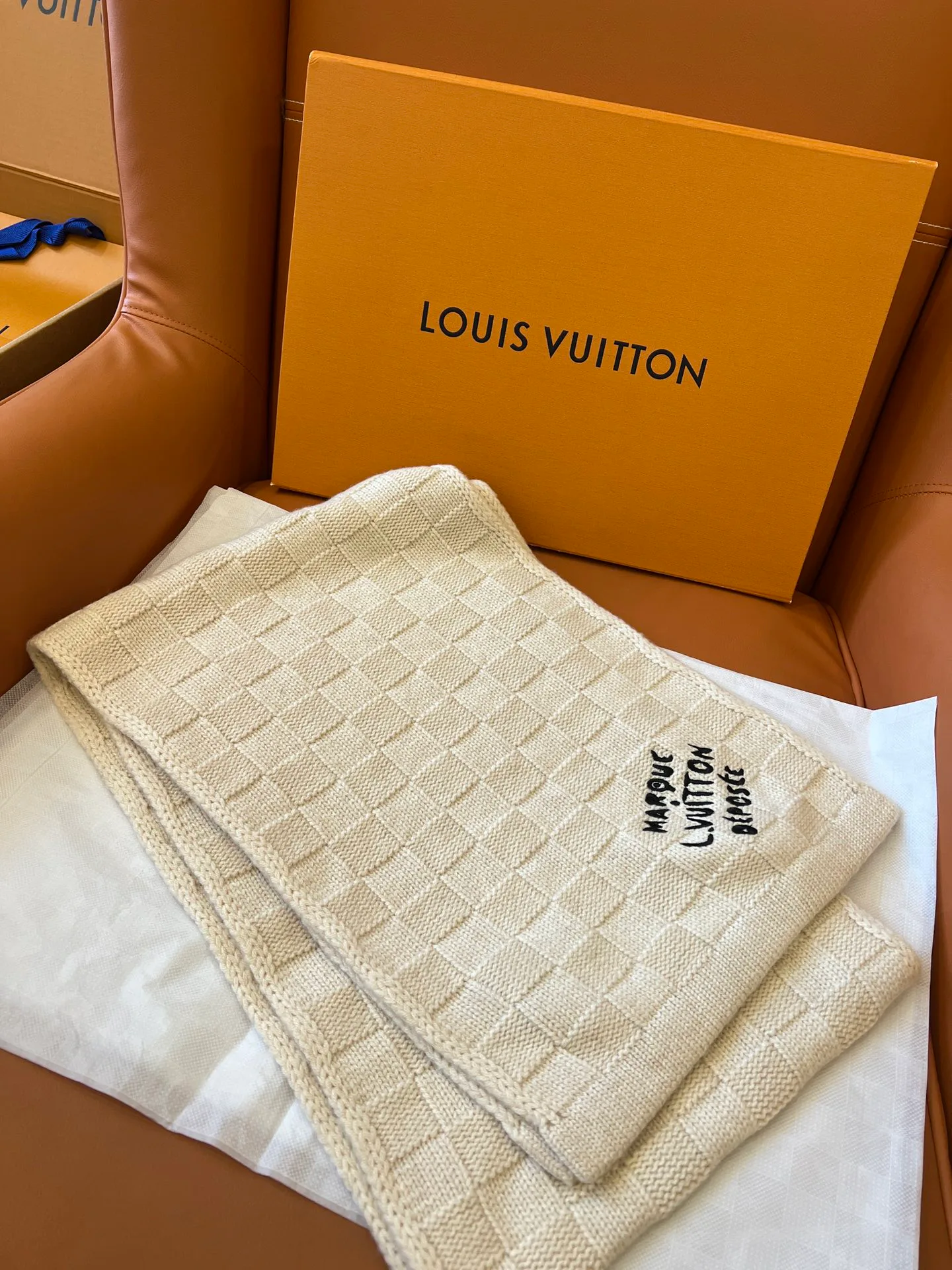 Шарф имеет стильный трехмерный дизайн в виде шахматной клетки, что придает ему особую индивидуальность. LOUIS VUITTON всегда сочетает в своих изделиях практичность и стиль, что делает этот шарф идеальным выбором как для повседневной носки, так и для деловых встреч.