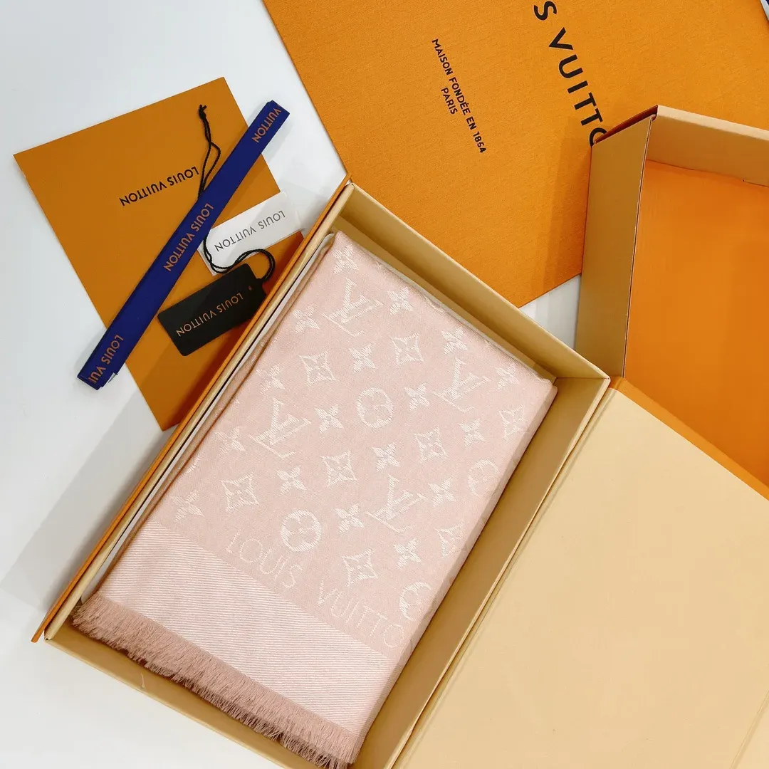 Узоры Monogram, вдохновленные классическим дизайном бренда, дополнены современными акцентами, что делает этот аксессуар особенно привлекательным. Текстура шали создаёт игру света и тени, придавая ей шарм и изысканность.
