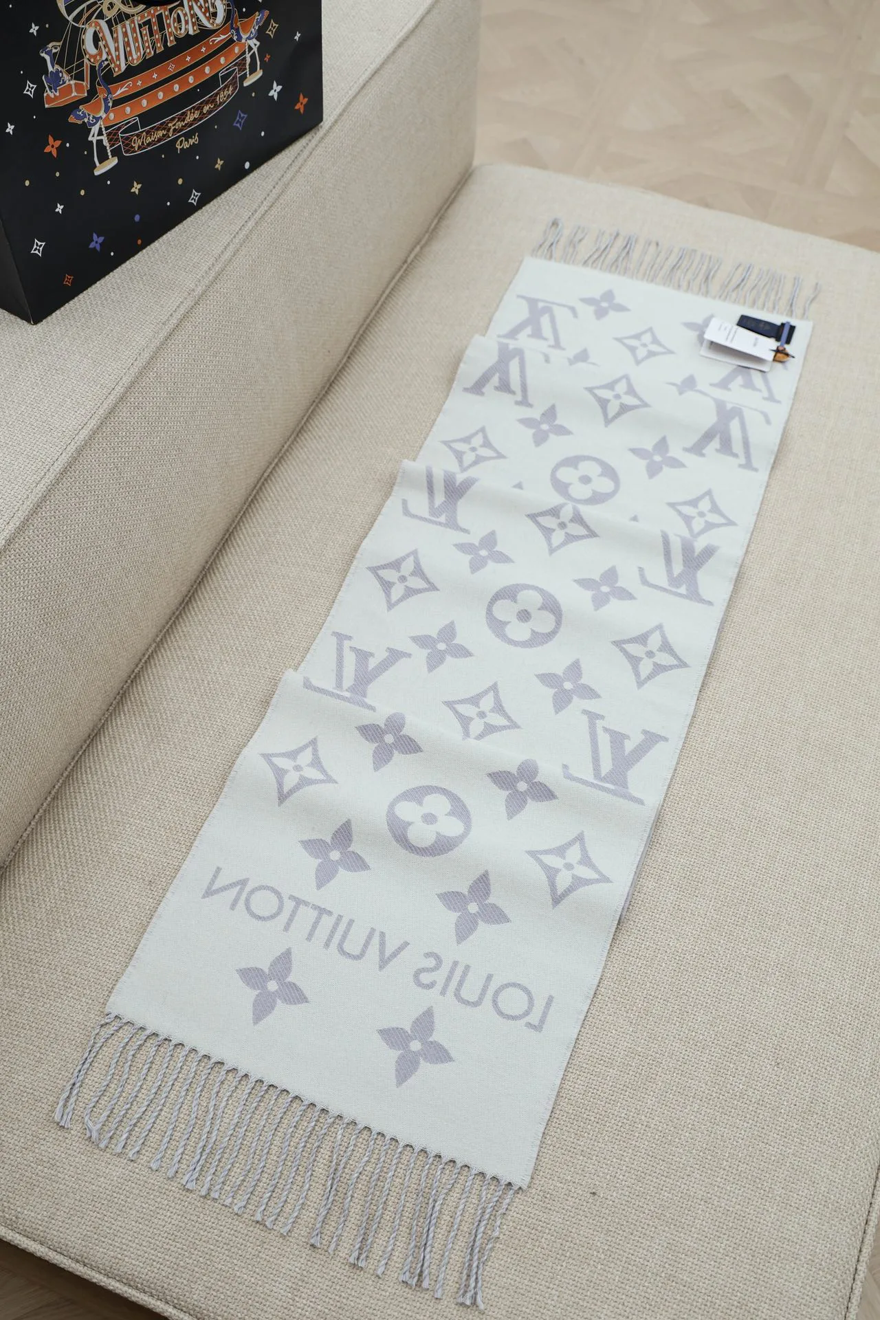 Поверхность шарфа украшена фирменным логотипом LOUIS VUITTON, а края оформлены эффектной бахромой. Нижний ярлык содержит встроенный чип с QR-кодом. Рекомендуется профессиональная сухая чистка для ухода за изделием. Шарф подходит для создания комфортного и расслабленного образа, дополняя коллекции Reykjavik и Logomania.