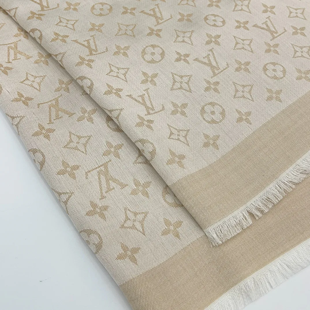 Состав: 47% шелк тутовый, 26% вискоза, 17% шерсть, 10% полиэстер. Эта смесь обеспечивает мягкость, блеск и тепло. Декоративная бахрома по краю и ярко выделяющийся Monogram узор, подчеркнутый металлизированными нитями, добавляют элегантности и демонстрируют внимание к деталям. Шаль подходит как для дневного, так и для вечернего времени суток.