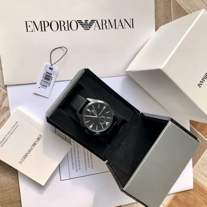 Час мужской ARMANI — кварцевые часы с черным циферблатом с эффектом солнца и люминесцентными стрелками, выполненные в сдержанном элегантном стиле. На циферблате заметны два элемента дизайна. Изготовление осуществляется на контрактной фабрике с точной обработкой и вниманием к деталям. Диаметр корпуса около 43 мм и водостойкость до 30 метров обеспечивают комфорт повседневного ношения. Поставляются во полной упаковке, на изделии размещён логотип бренда.