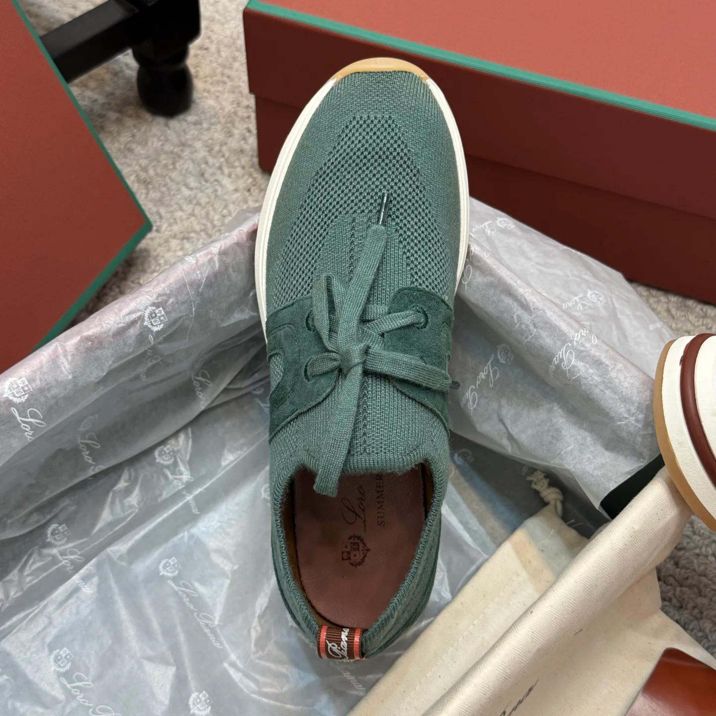 Кеды мужские LORO PIANA — коллекция Tennis walk, повседневные кроссовки для городского образа. Верх выполнен по оригинальной настраиваемой вязке. Внутренняя подкладка — овечья кожа. Подошва выполнена по оригинальной формовке из противоскользящей резины, толщина подошвы — 3 см. Размеры: 35–46, 45–46 доступны по заказу и доставка осуществляется в фирменной упаковке.