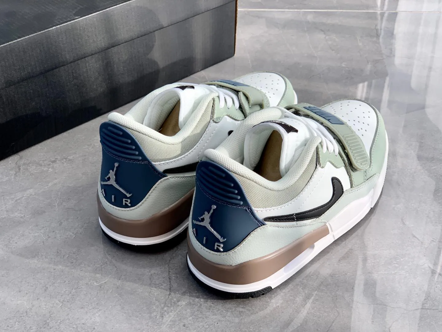 Задник и подошва выполнены по дизайне Air Jordan 3, задник украшен характерной трещиноватой фактурой, а дизайн сочетает классические элементы Jordan с современными решениями.