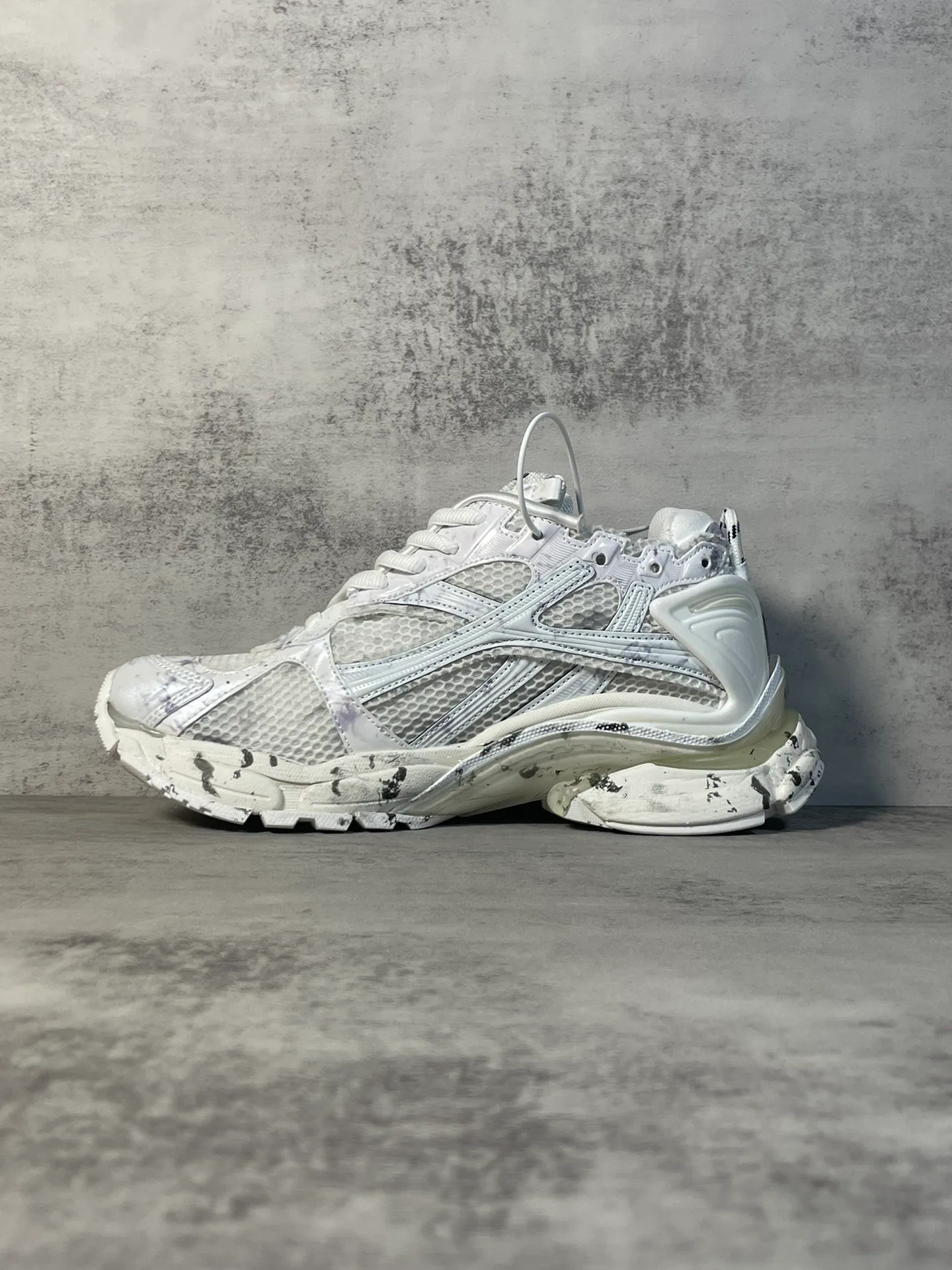 Кроссовки мужские BALENCIAGA — модель Runner седьмого поколения демонстрирует характерный для дизайнера Demna стиль. Детали в виде контролируемой избыточной проклейки, искусственного состаривания и контрастной строчки создают эффект винтажной обуви. Приподнятый носок и конструкция задника отражают футуристичный подход к форме. Комплект включает фирменную коробку, повторяющую оригинальную упаковку.