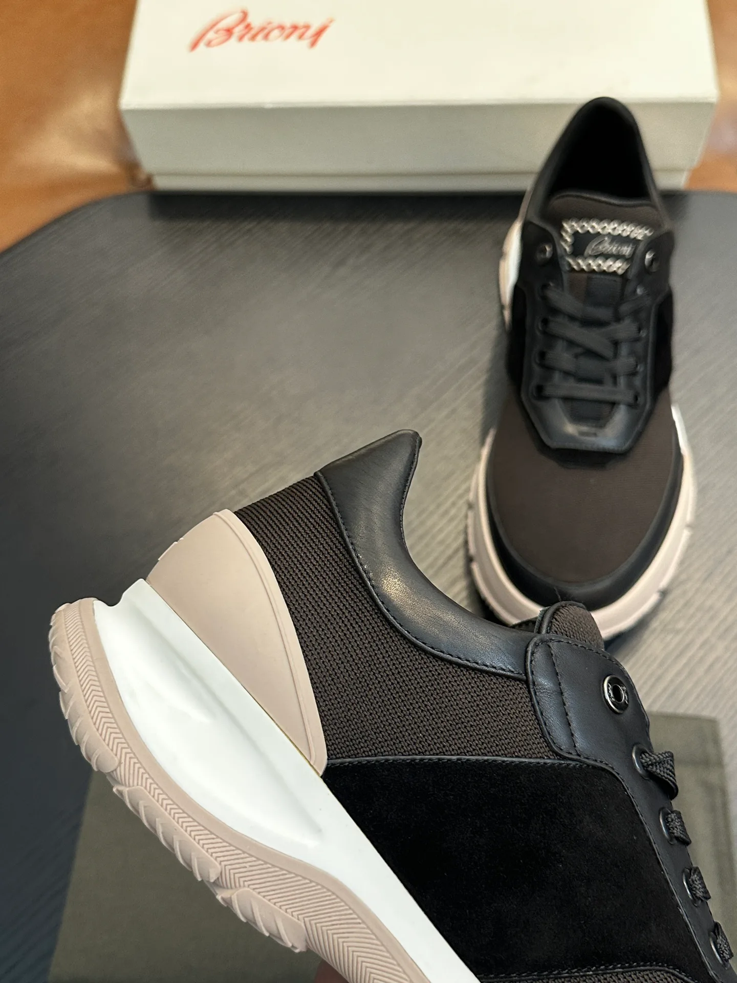 Кроссовки имеют легкую композитную подошву, обеспечивающую комфорт и хорошую амортизацию в повседневной носке. Размеры стандартные: 39–44, по заказу доступны размеры 38, 45, 46. Обувь подходит для городского спортивного стиля с элементами роскоши, сочетается с джинсами, чиносами или спортивными брюками.
