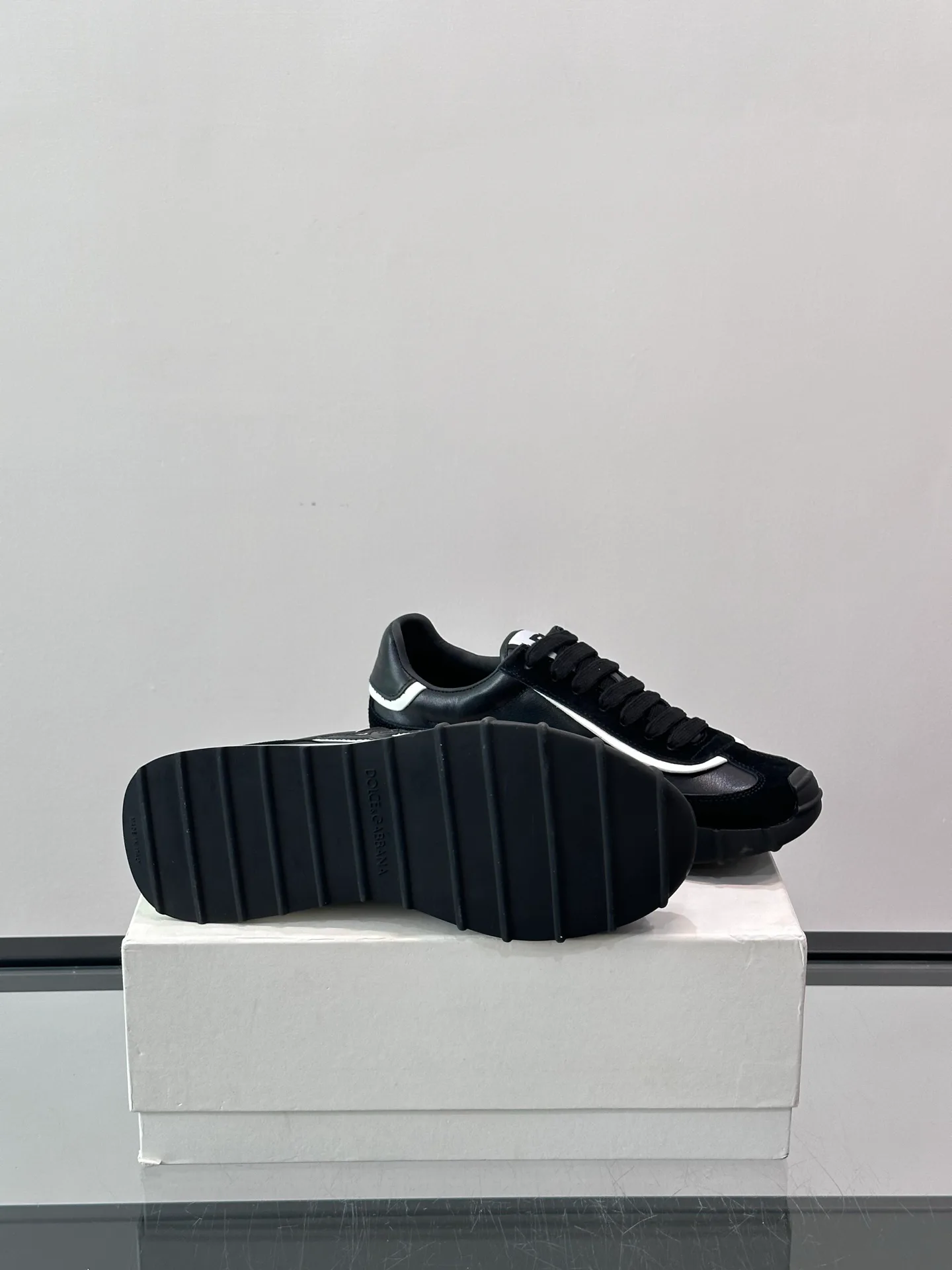 Язычок и задник украшены фирменным логотипом, что добавляет обуви узнаваемый стиль. Подошва — резиновая, прочная и сцепляющаяся с поверхностью; носок и пятка дополнительно обёрнуты защитной оболочкой, что обеспечивает лучшую защиту стопы и долговечность.