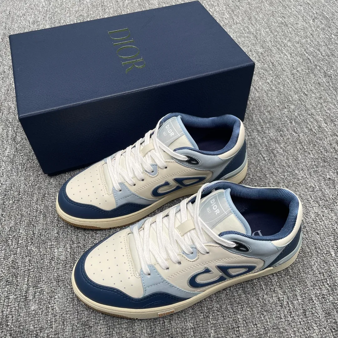 Кроссовки имеют низкий воротник с дополнительной набивкой для комфорта, а система шнуровки с двухцветными элементами и отверстиями CD логотипа обеспечивает удобную посадку. Носочная часть с сетчатой подкладкой поддерживает хорошую вентиляцию, а резиновая подошва снабжена боковой строчкой и структурой, несущей стиль Dior. Обувь доступна в размере 39-44 и соответствует стандартной размерной линейке кожаной мужской обуви.