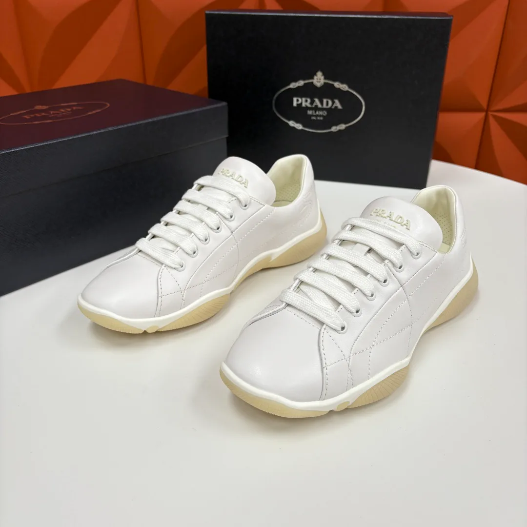 Лёгкая двухцветная резиновая подошва толщиной 2,5 см обеспечивает амортизацию и лёгкость. Оболочка-структура вокруг верха добавляет прочности, а язычок с логотипом PRADA выделяет модель. Размеры кроссовок составляют 39–44. Подходит для повседневной носки и спортивных образов. Упаковка включает оригинальный чехол-балдахин для защиты.