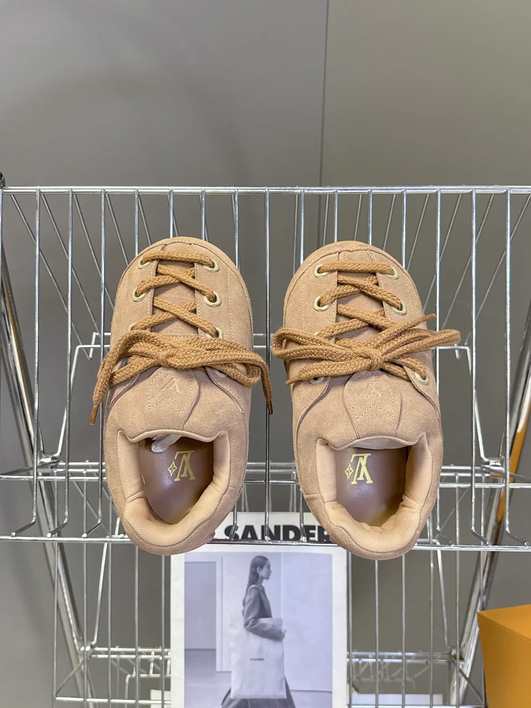 - Подошва: резиновая, с антискольжением. Под подошвой скрыты элементы с буквами LV и цветами Monogram, что придаёт обуви декоративный акцент.
