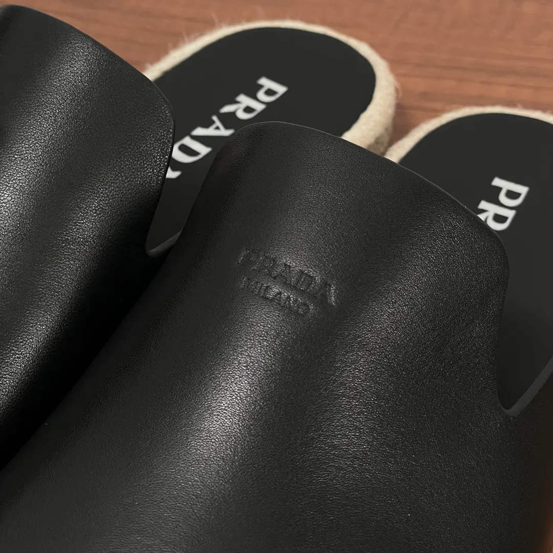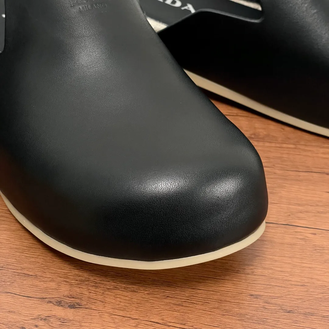 Подошва мюлей легкая и резиновая с противоскользящим эффектом, а также с узнаваемым треугольным логотипом PRADA. Доступны стандартные размеры 40, 41, 42, 43, 44, а также возможны заказные размеры 45 и 46 (изготовление под заказ). Мюли поставляются в оригинальной упаковке и защитном мешке против пыли.