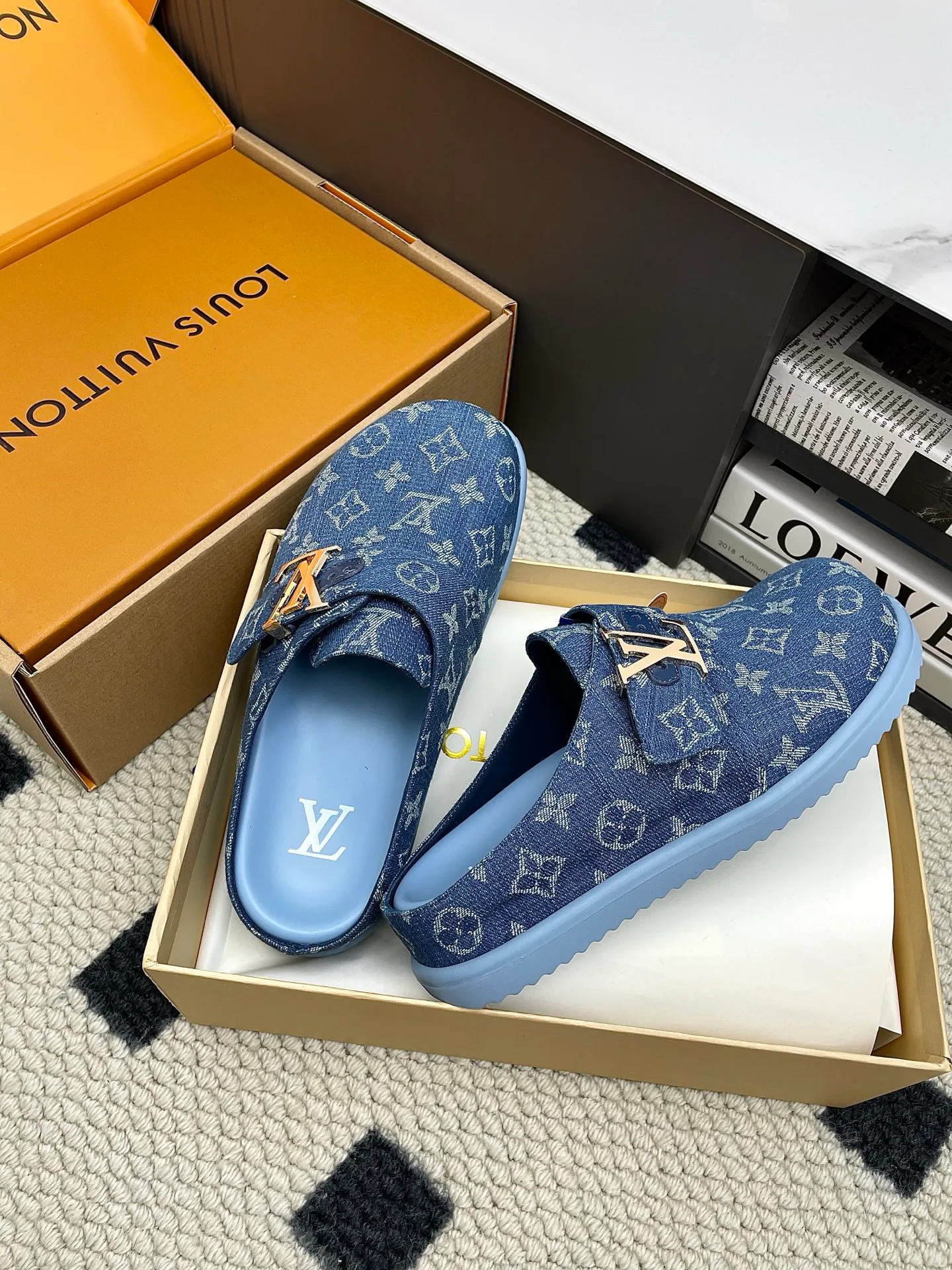 Сандалии имеют оригинальную противоскользящую TPU-подошву, которая лёгкая и устойчивая на различных поверхностях. Регулируемая шнуровка с элементами логотипа позволяет подогнать посадку под ногу. Высота подошвы увеличена на 3 см для дополнительного комфорта. Классический монохромный облик с LV-монограммным узором гармонично сочетается с разнообразным гардеробом.