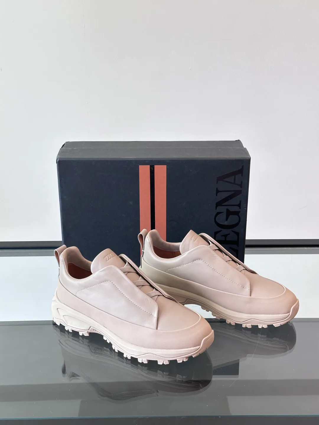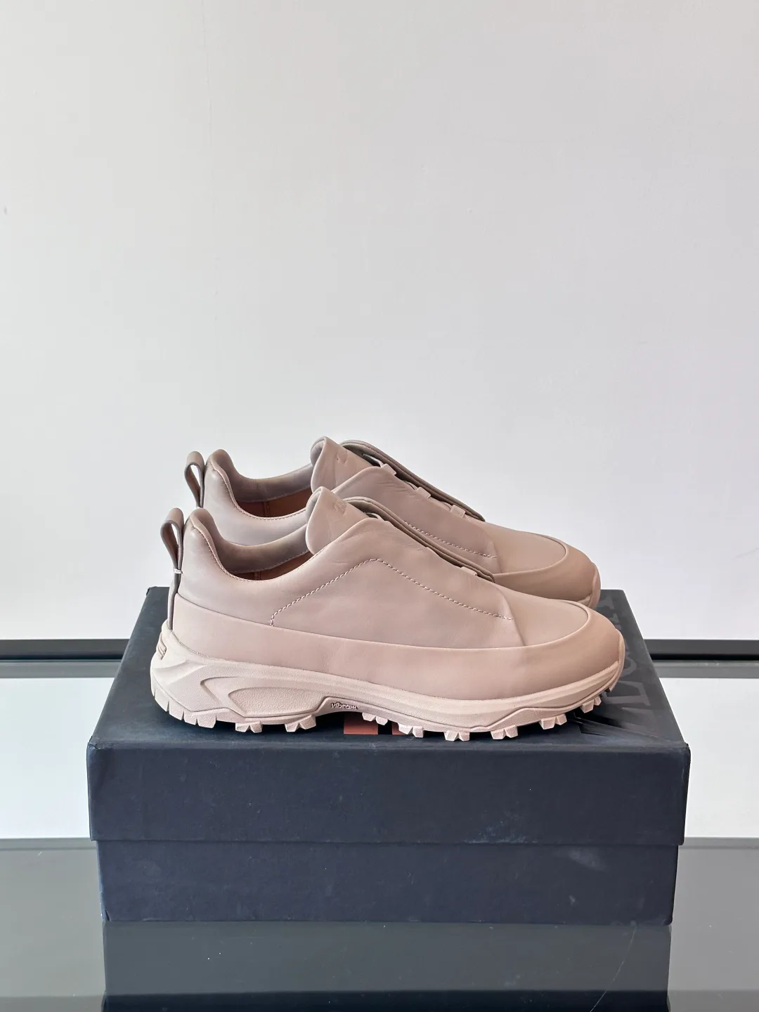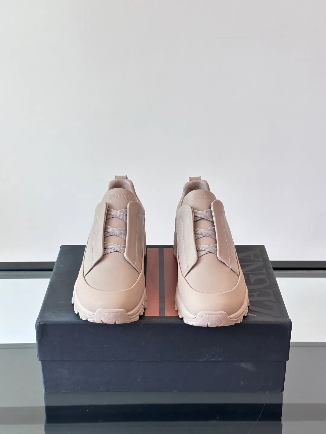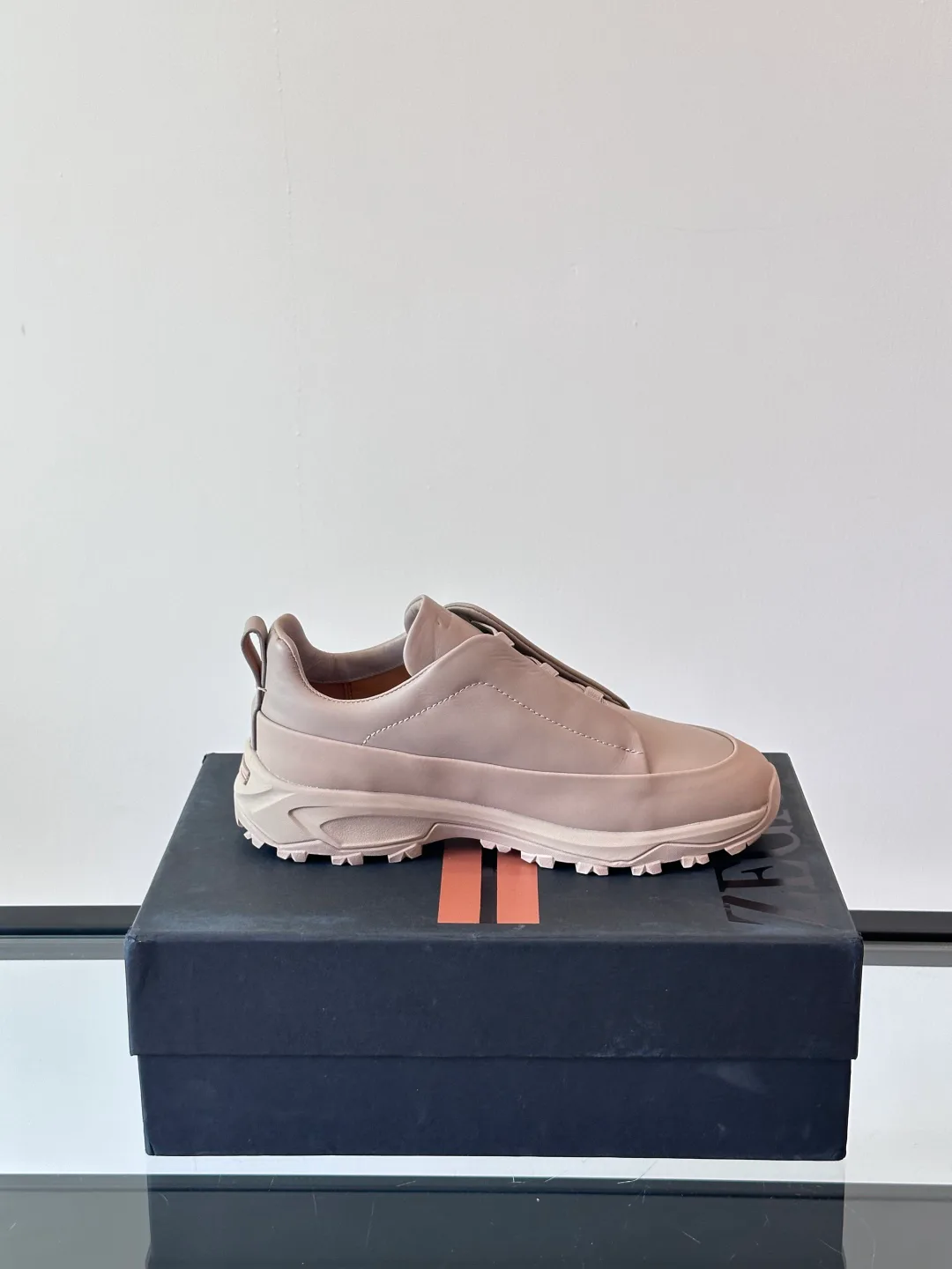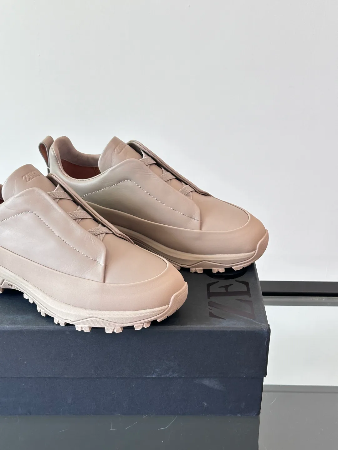 Обувь украшена фирменными тройными пересекающимися резинками, которые облегчают надевание и снятие. Это отсылает к ремеслу ручного шитья.