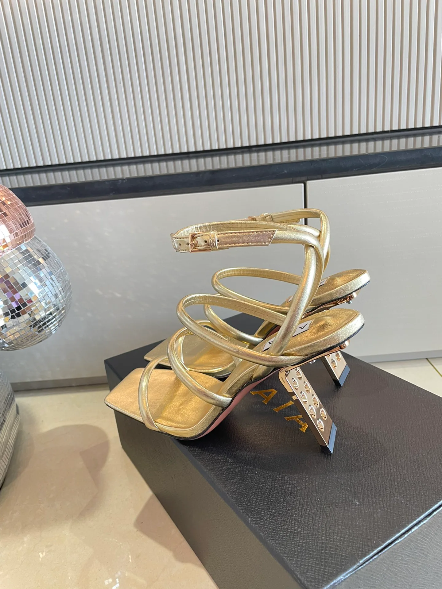 Геометрическая форма каблука из нержавеющей стали не только привлекает внимание, но и обеспечивает надежную поддержку. Сандалии отлично сочетаются с различными вариантами одежды: будь то джинсы, брюки или юбка-плиссе, они без труда поднимут ваш образ на новый уровень моды, элегантности и утонченности.