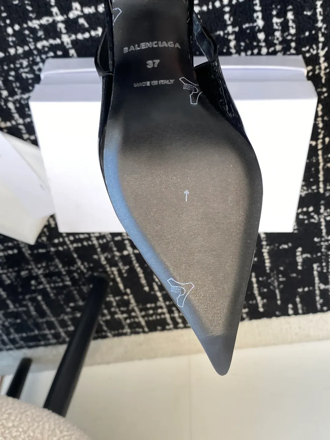 Особенность — каблук в виде бокала и вставленная платформа, что добавляет элегантность и визуальный баланс. Такая конструкция поддерживает положение ноги и способствует устойчивости.