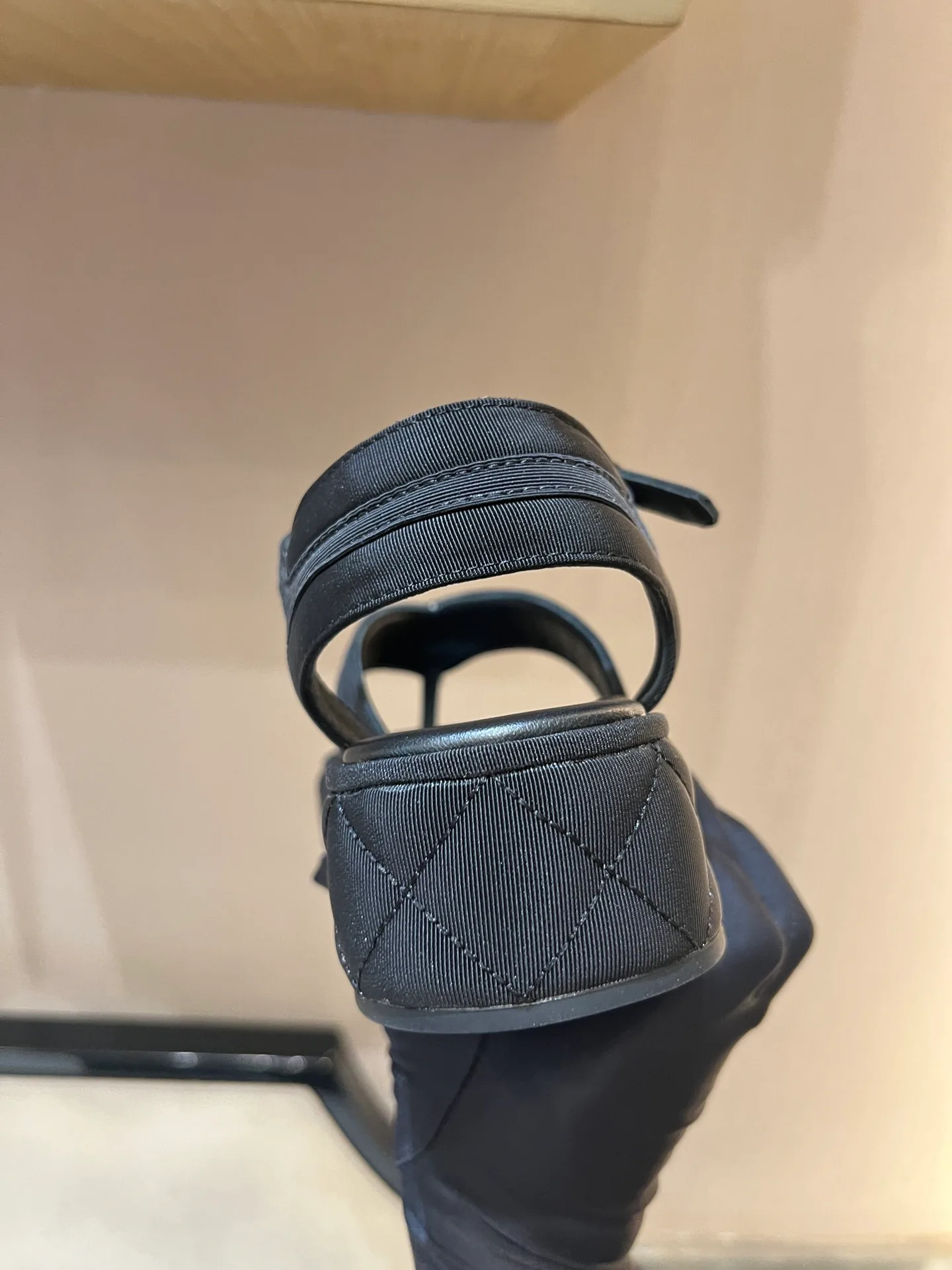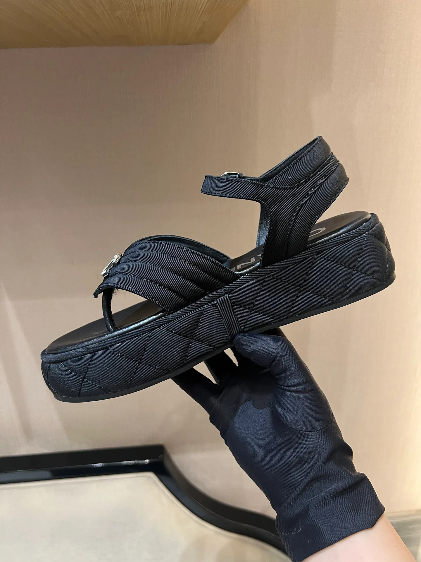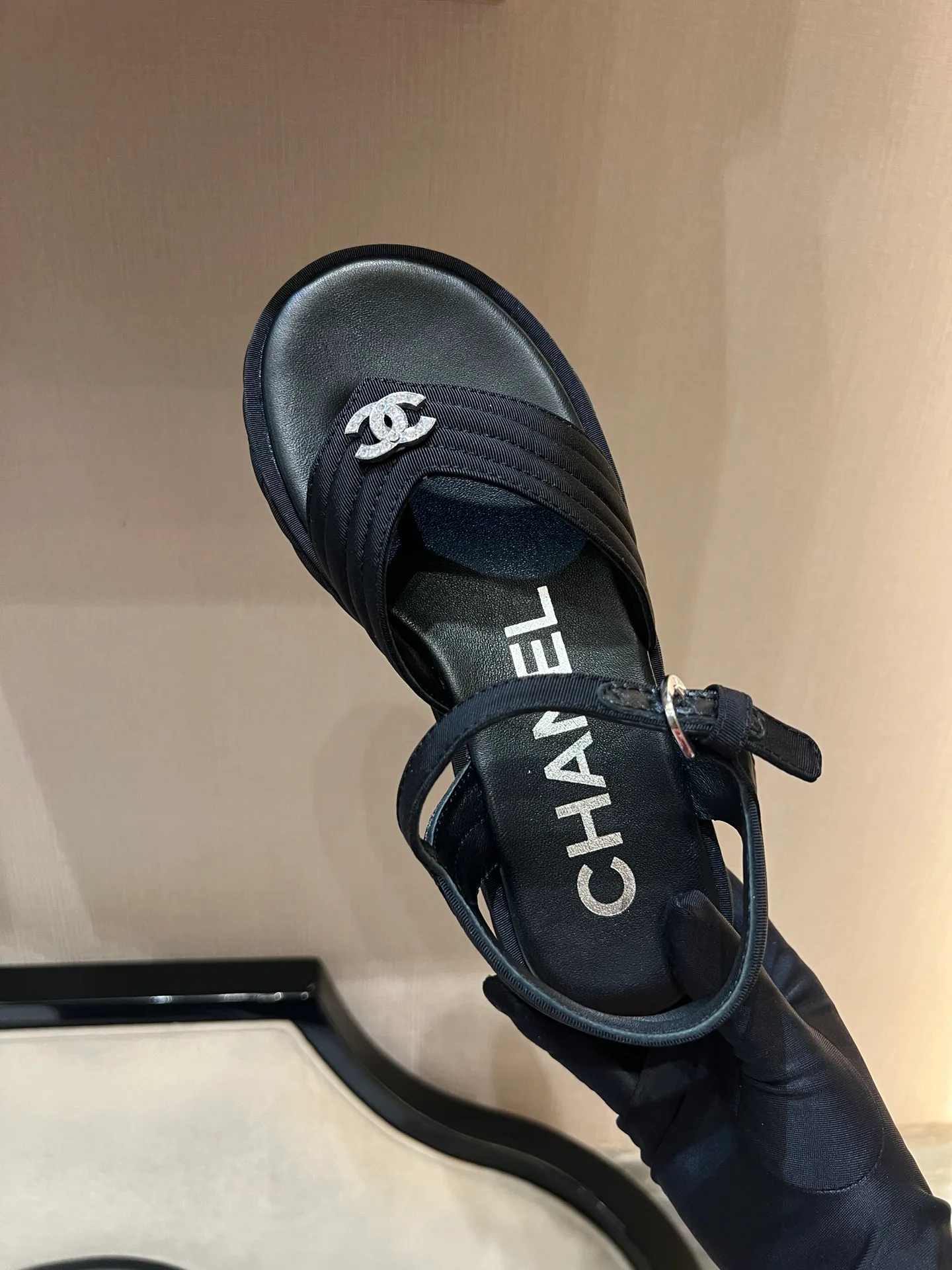 Босоножки имеют оригинальную конструкцию с дублированной логотипной вставкой в виде двух C, что придает обуви особый шик. Рифленая подошва с ромбовидным кантом обеспечивает устойчивость и комфорт шага. Их легко сочетать с повседневной одеждой, что делает их подходящими для разных ситуаций.