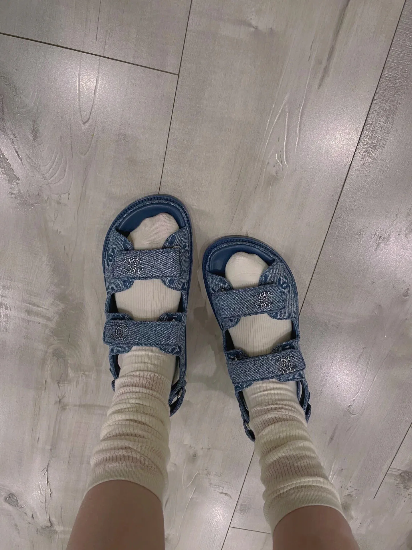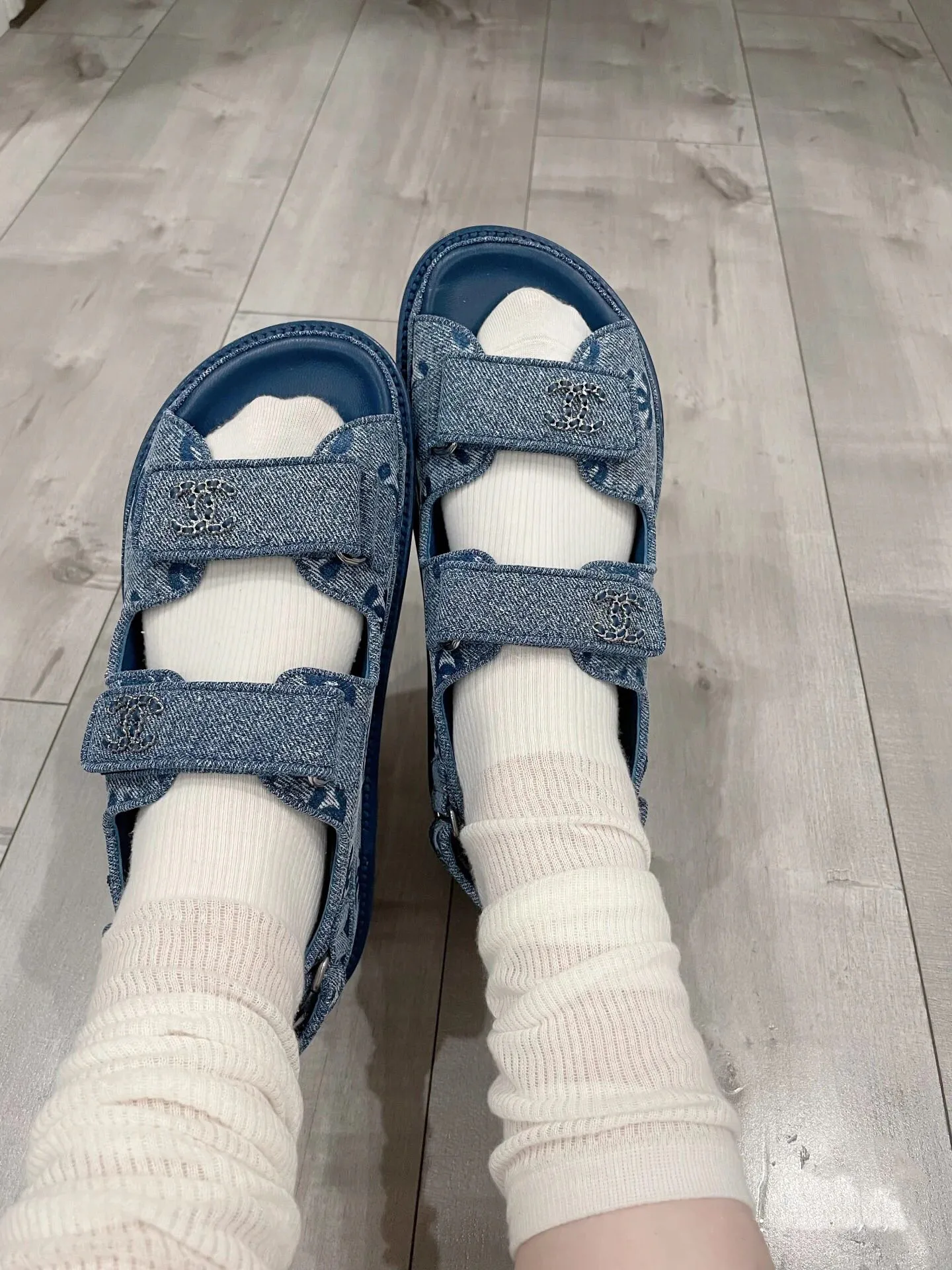 Материал, напоминающий деним, добавляет текстуру и визуальный интерес. Гладкая подошва обеспечивает комфорт при длительной носке; сандалии подходят для прогулок по городу и отдыха на природе.