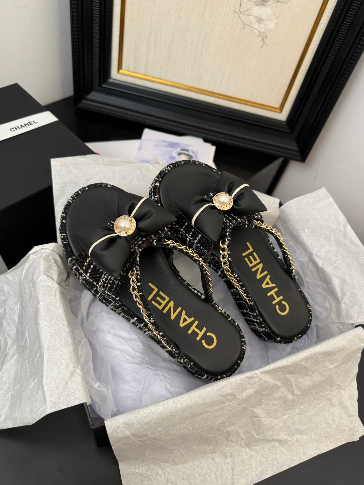 Погрузитесь в мир стиля и комфорта с этими великолепными сандалиями от CHANEL!