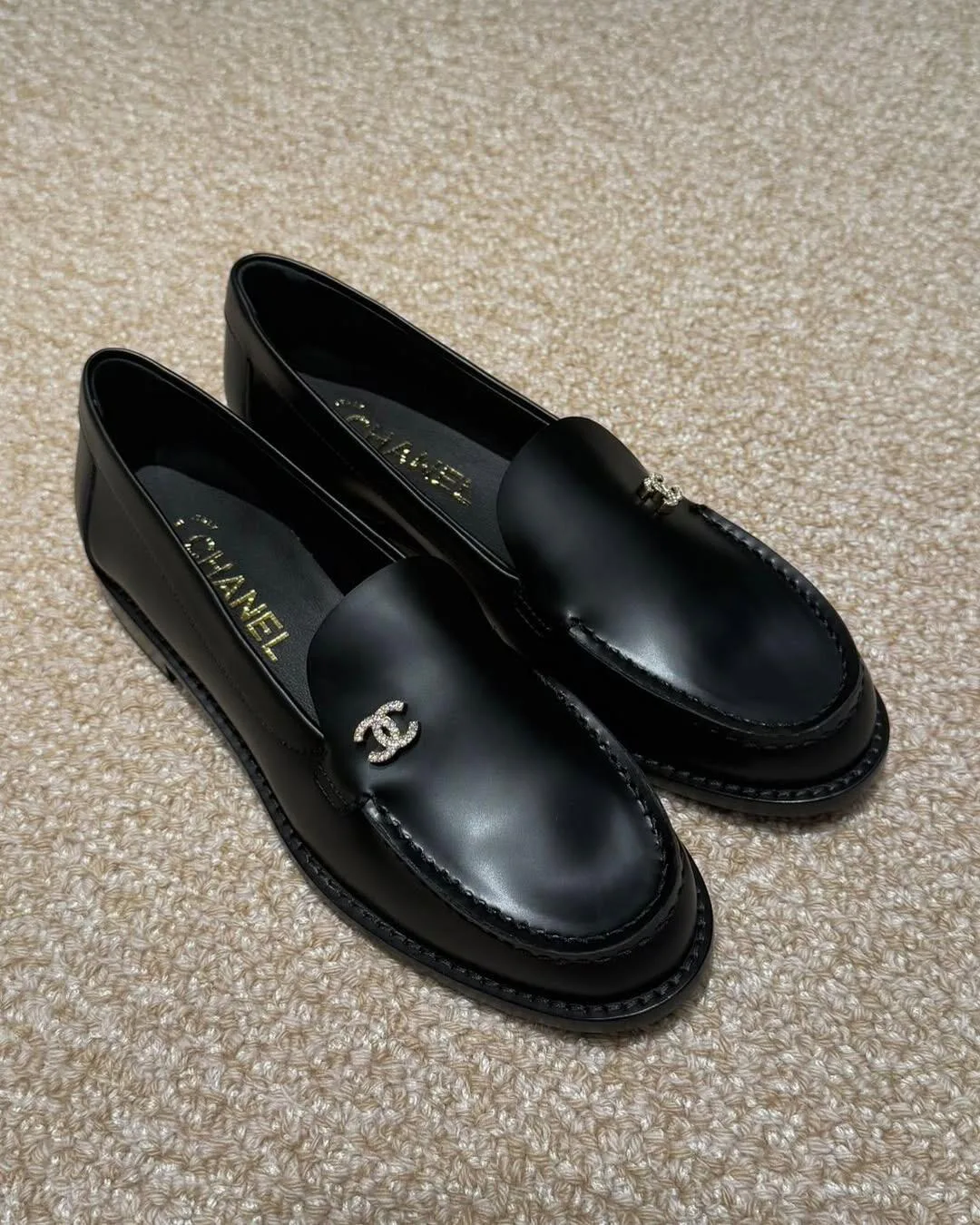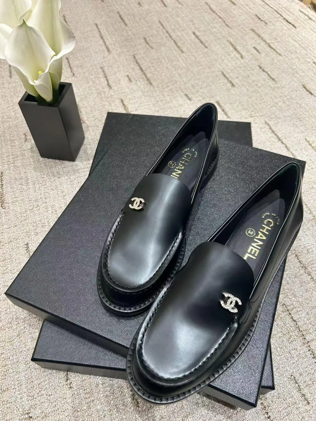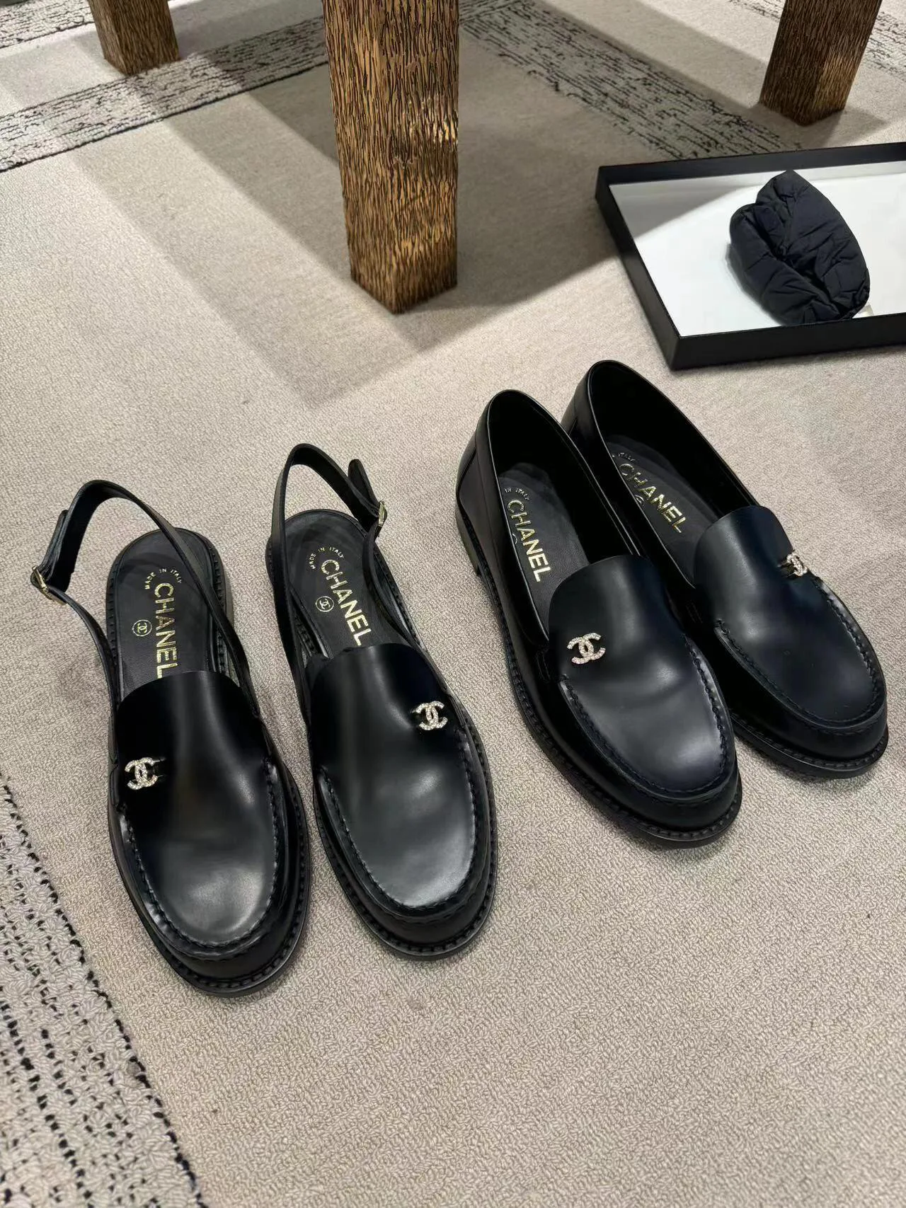 Вторая пара — чёрные кожаные босоножки с открытым носом и закрытой пяткой. Фиксация на щиколотке осуществляется ремешком с пряжкой, что обеспечивает надёжную поддержку и стильный вид. Логотип Chanel размещён на обуви, подчёркивая престиж и классический стиль. Босоножки универсальны и прекрасно вписываются в гардероб для различных мероприятий — от повседневных встреч до более формальных ужинов.