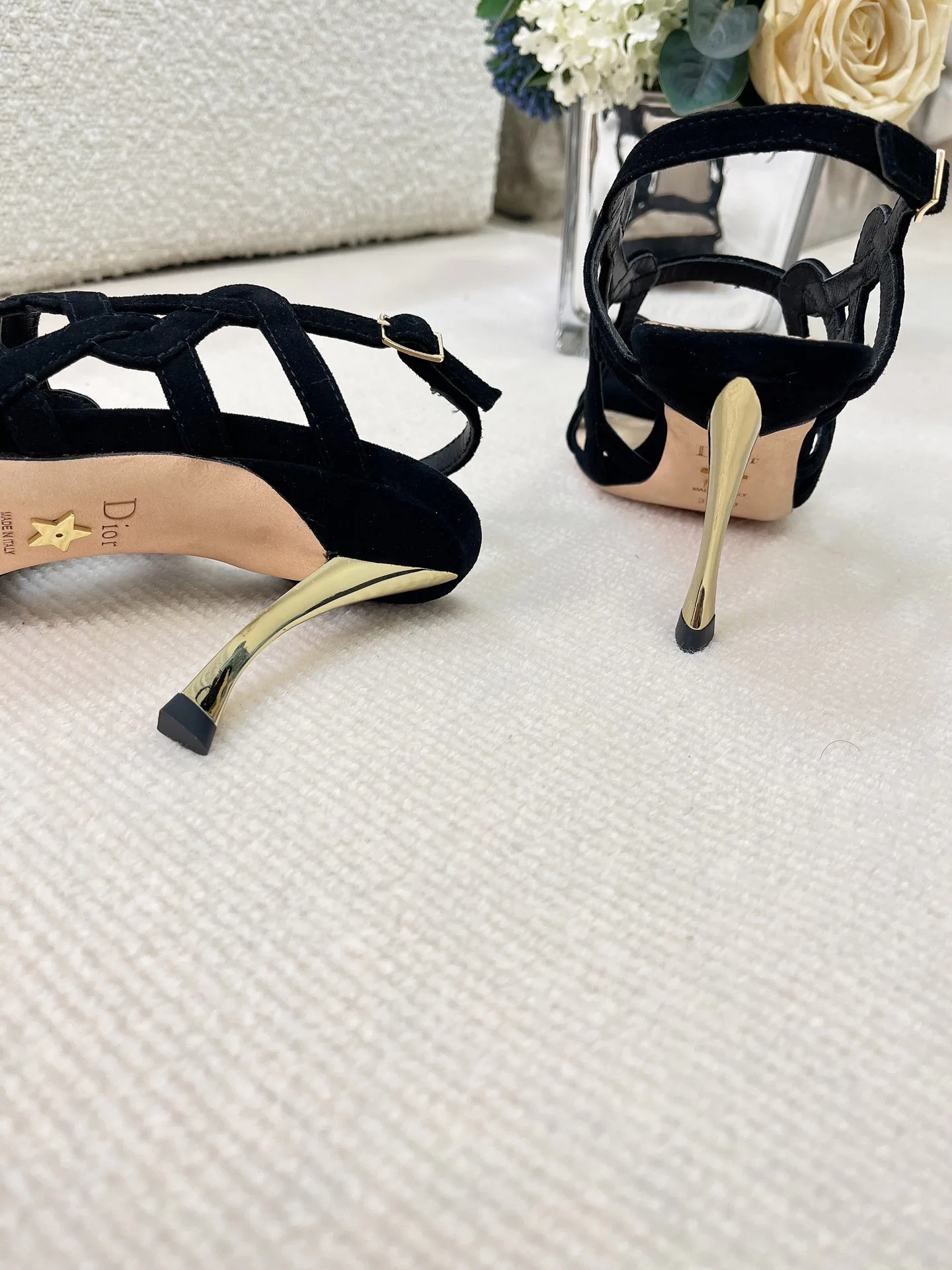 Каждая пара имеет кожаную подошву, украшенную символом удачи от Christian Dior, что подчёркивает статус бренда. Изготовлены в Италии, что обеспечивает внимание к деталям.