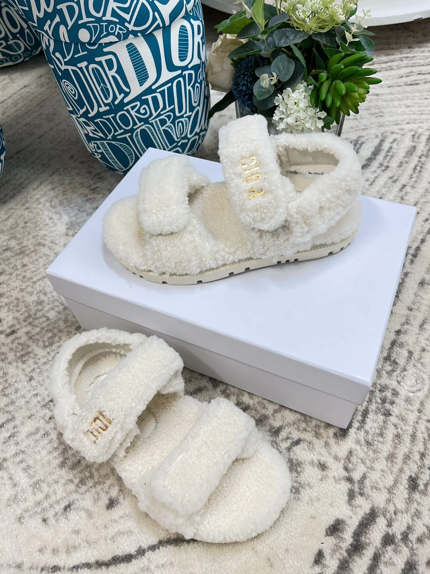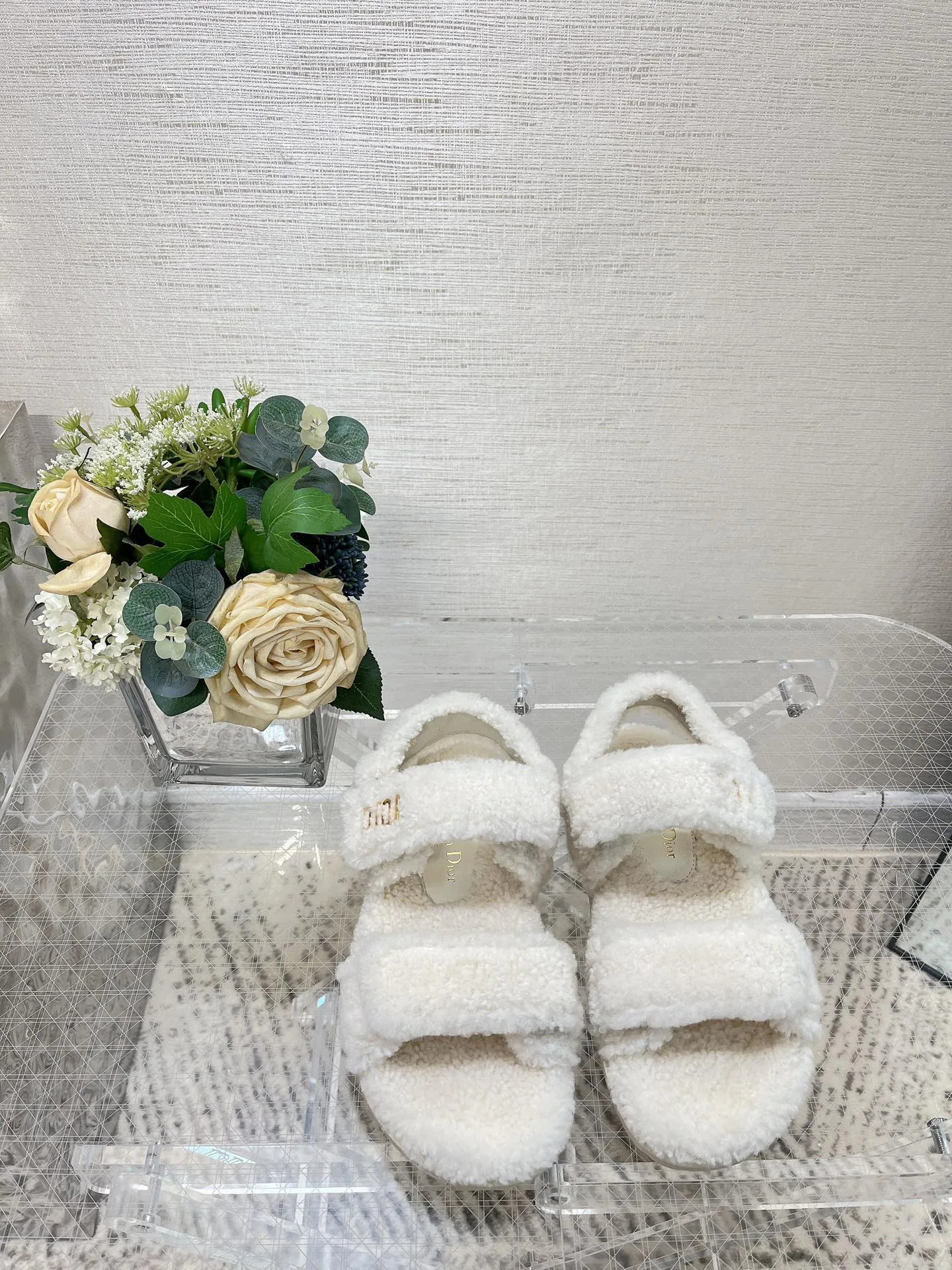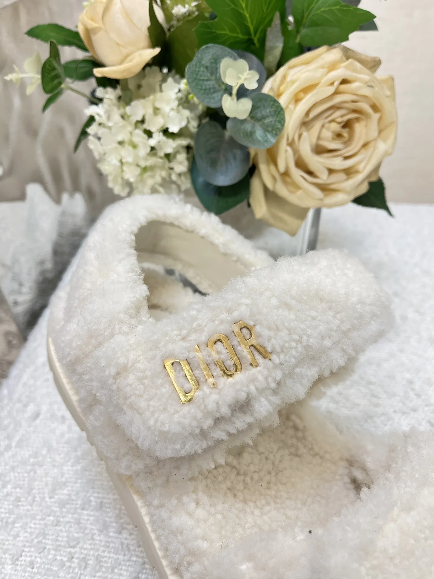 Сандалии имеют две регулируемые застёжки на липучках, позволяющие подстроить обувь под форму стопы. Металлический логотип DIOR с золотым покрытием служит эффектным акцентом в дизайне.