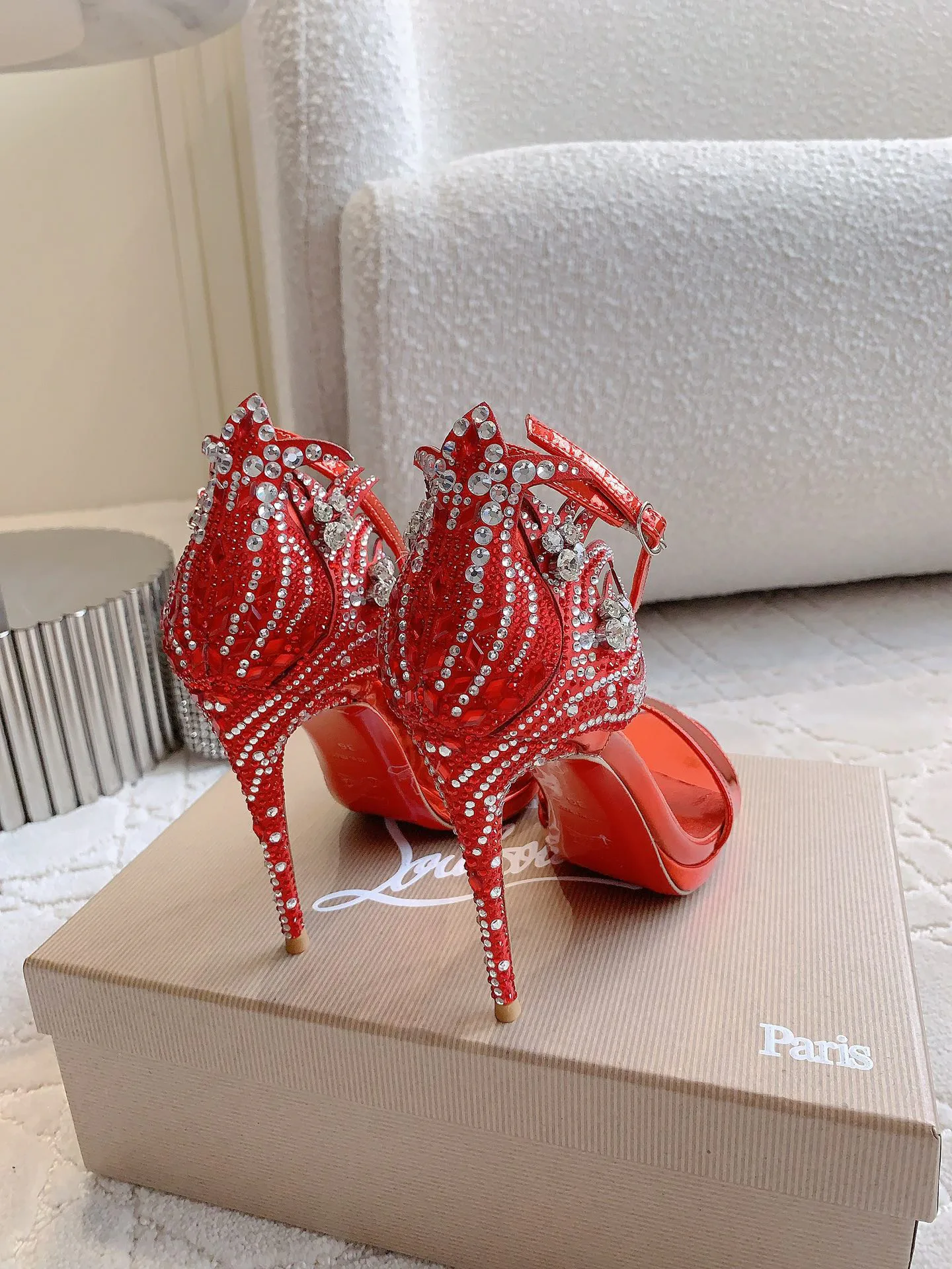 Высота каблука составляет 12 см, платформа имеет высоту 2,5 см. Обувь доступна в размерах от 35 до 39, также возможен заказ специальных размеров 34, 40, 41, 42 и 43. Эти сандалии подходят для особых случаев, где важен эффектный и элегантный образ.