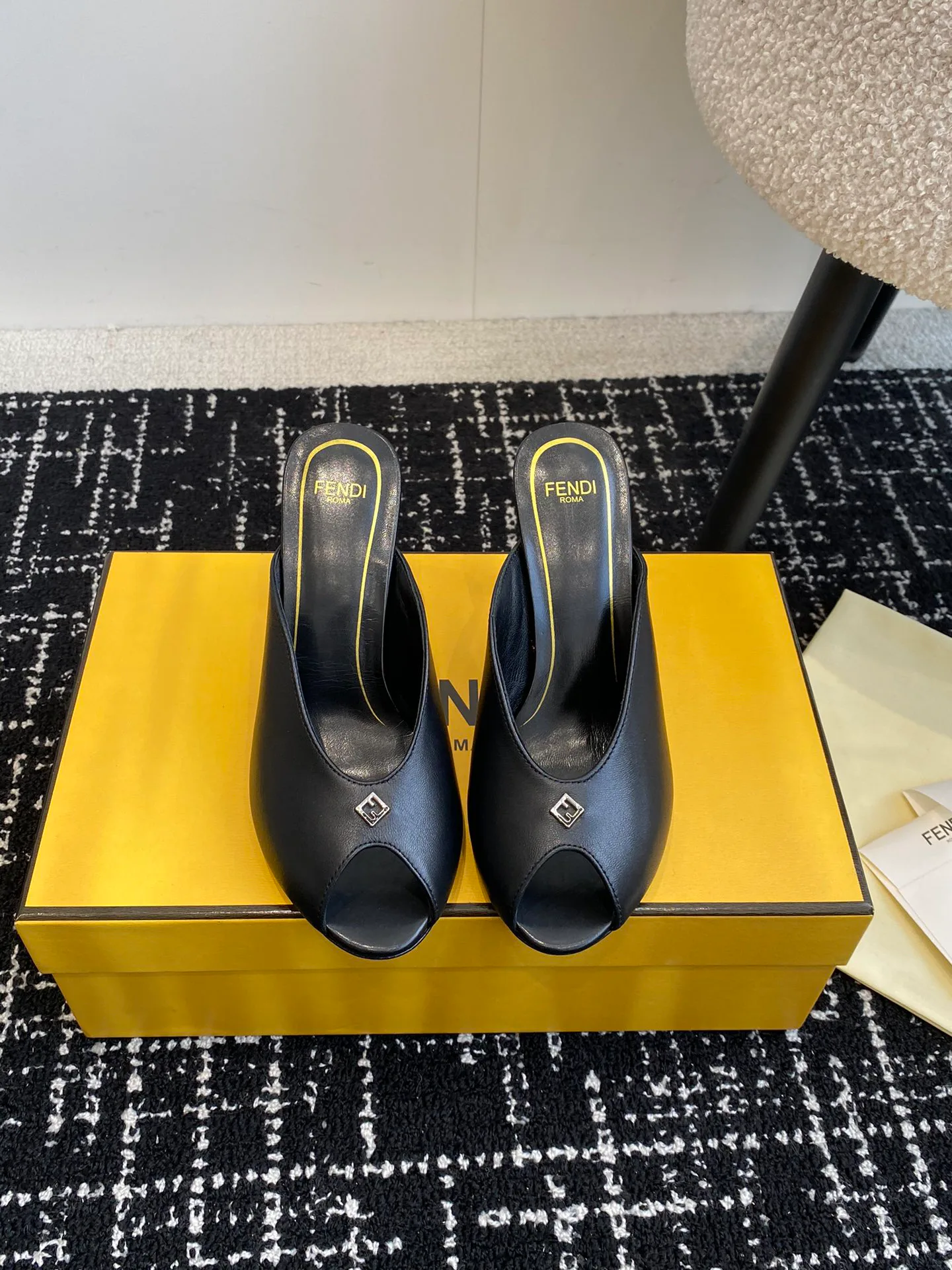 Каждый сезон FENDI обновляет свою коллекцию, и эта модель не стала исключением. Туфли-сланцы выделяются своим неповторимым стилем и качеством, которые вы ожидаете от легендарного бренда.