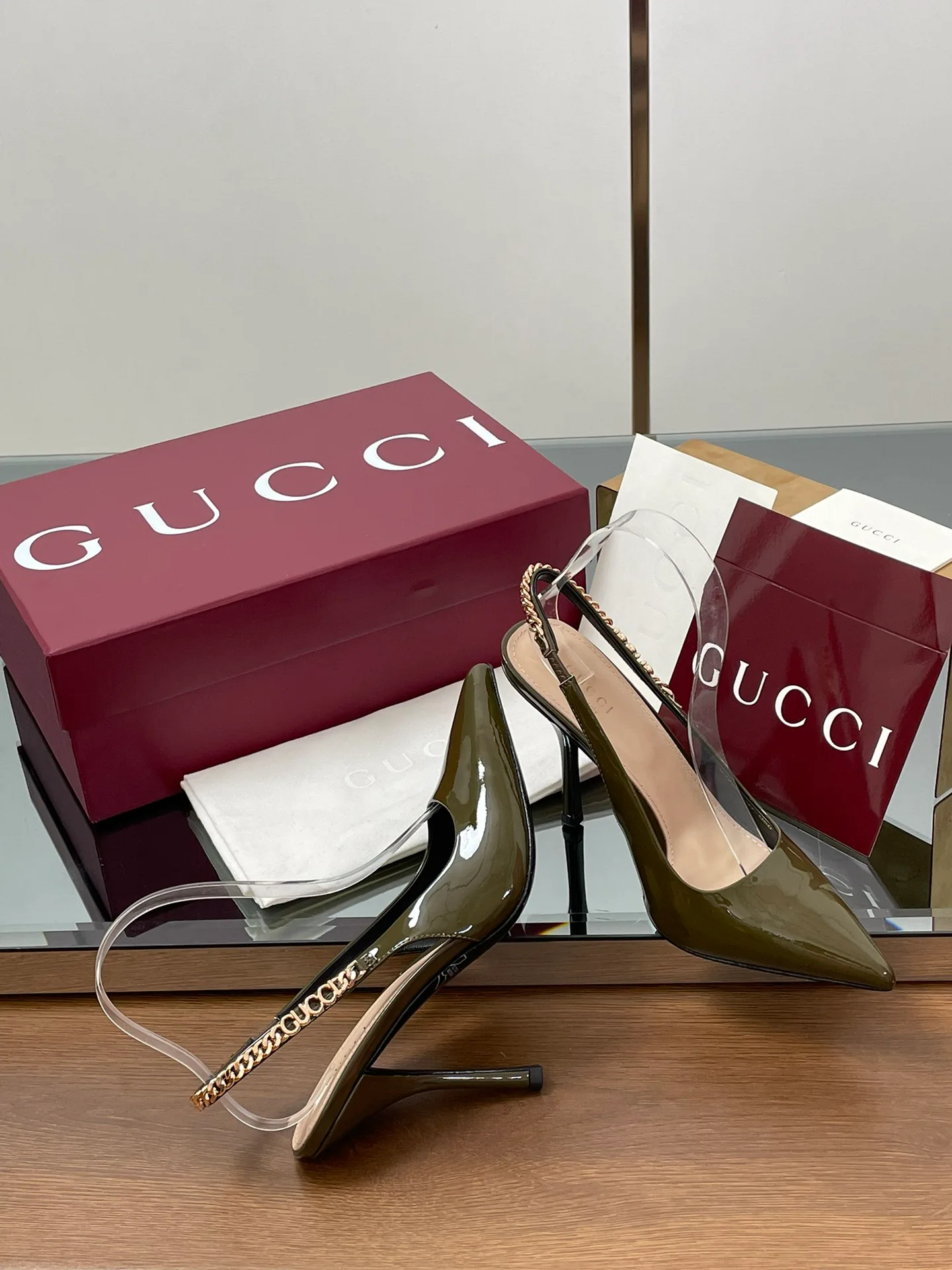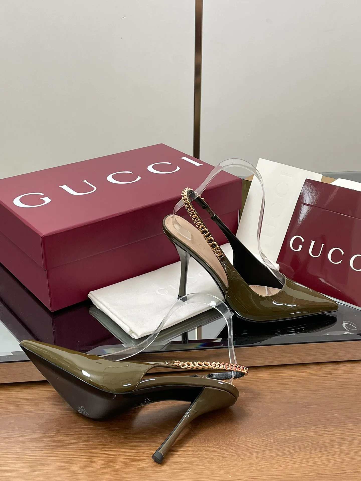 - Модель: Высокие сандалии с цепочкой и логотипом Gucci