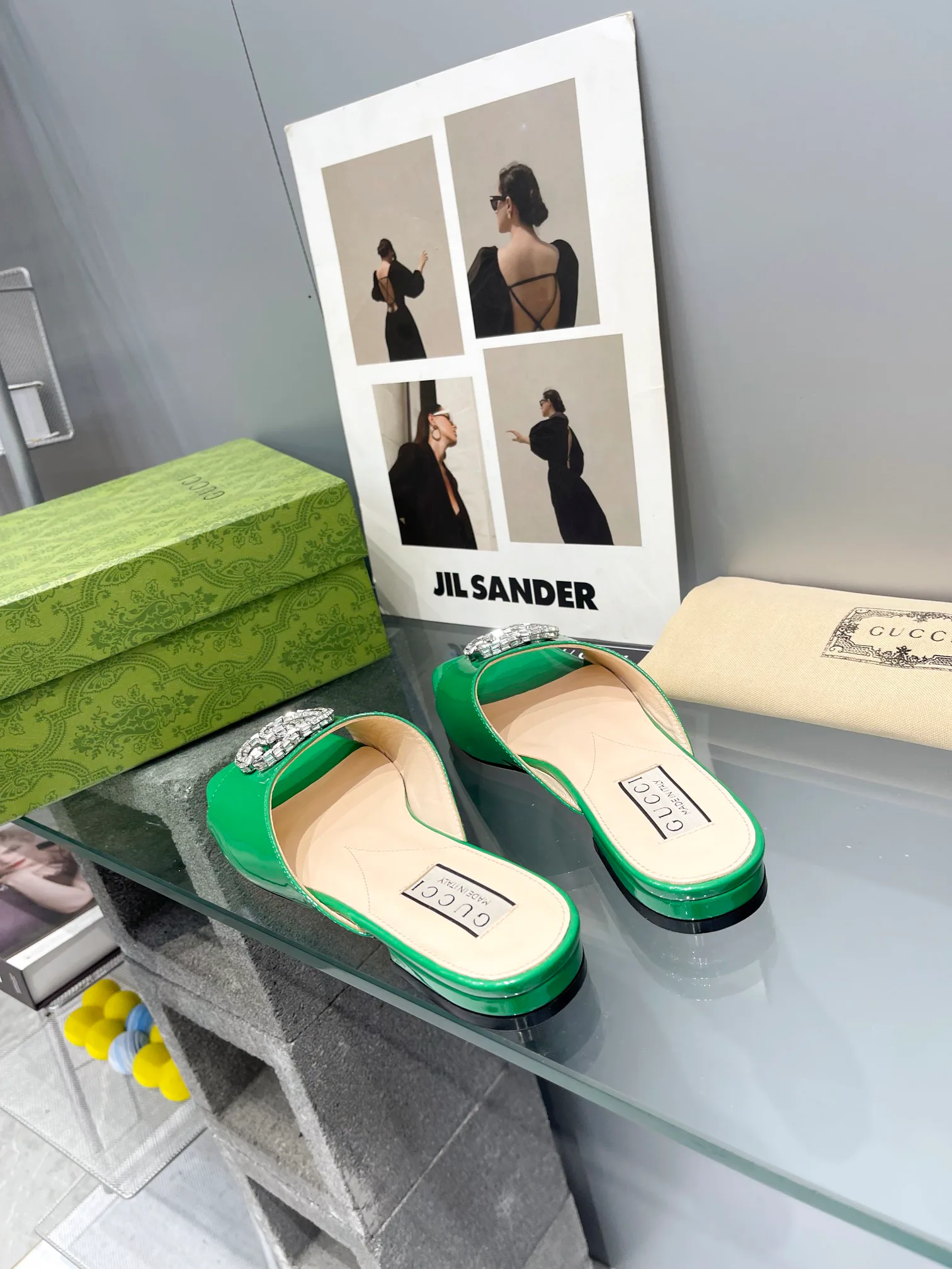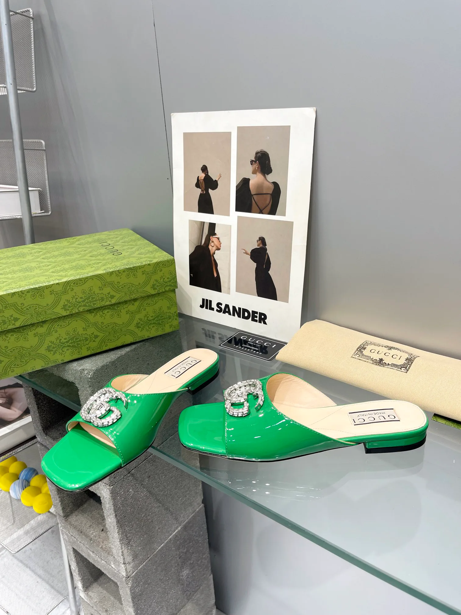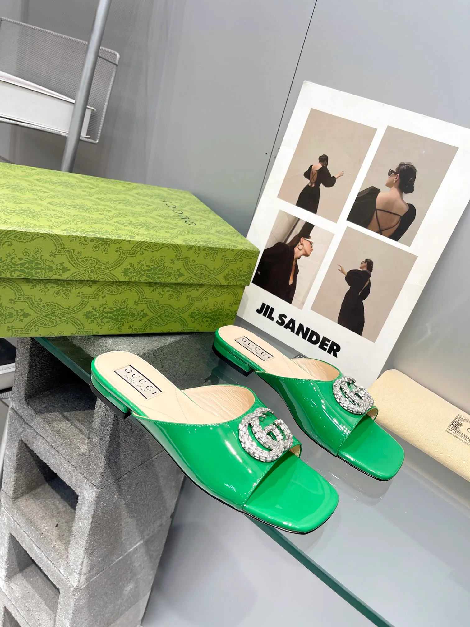 Особенность модели — украшение с двойным G, логотип Gucci, придающее сандалиям уникальность. Они подходят для повседневной носки и для нарядных образов.